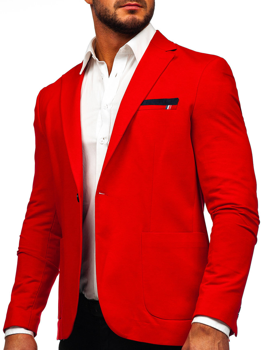 Crvene uske ležerne jakne za neformalne prilike. Savršeno pristaju uz figuru, imaju kopčanje na gumb i uske revere koji cjelini dodaju lakoću i karakter. Crveni sako izgleda sjajno s chinos hlačama i košuljom. Također nosite uz T-shirt i traperice.