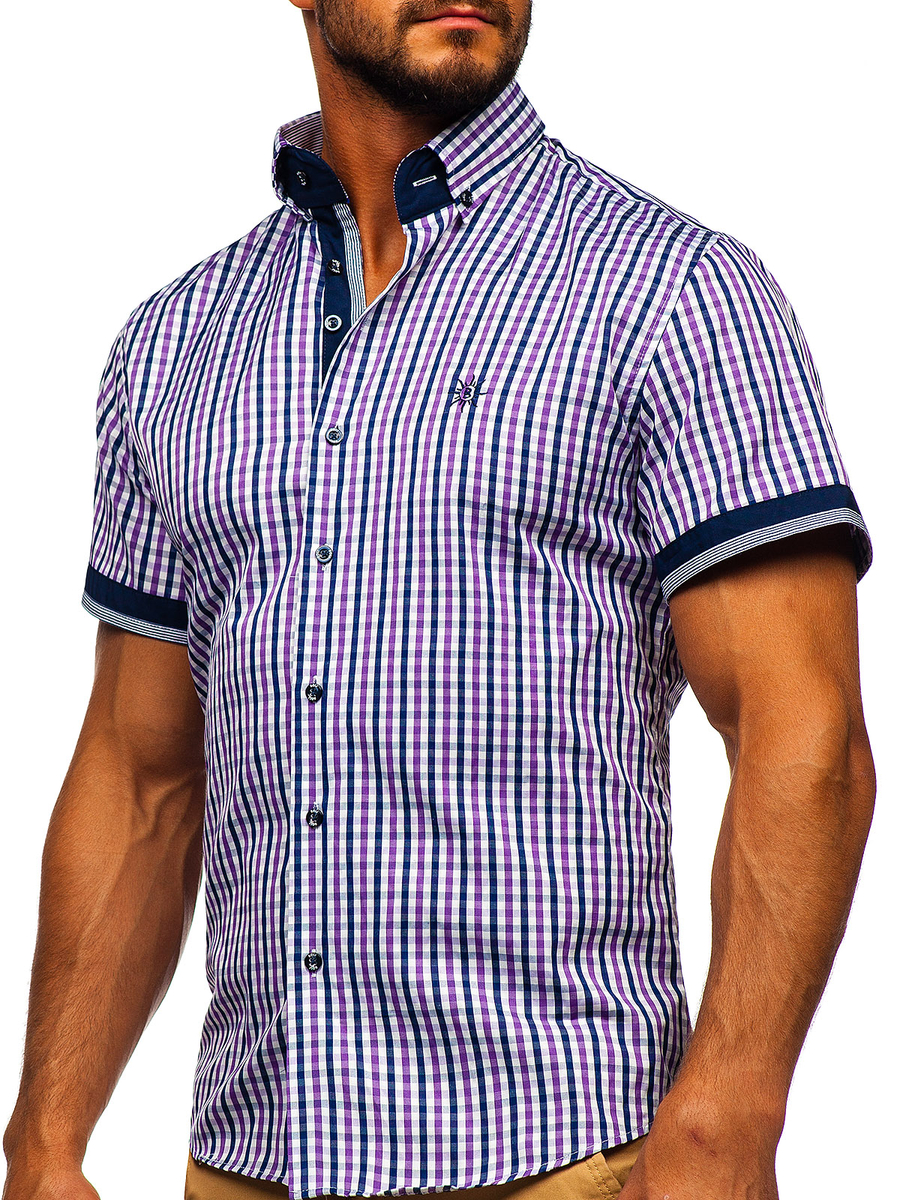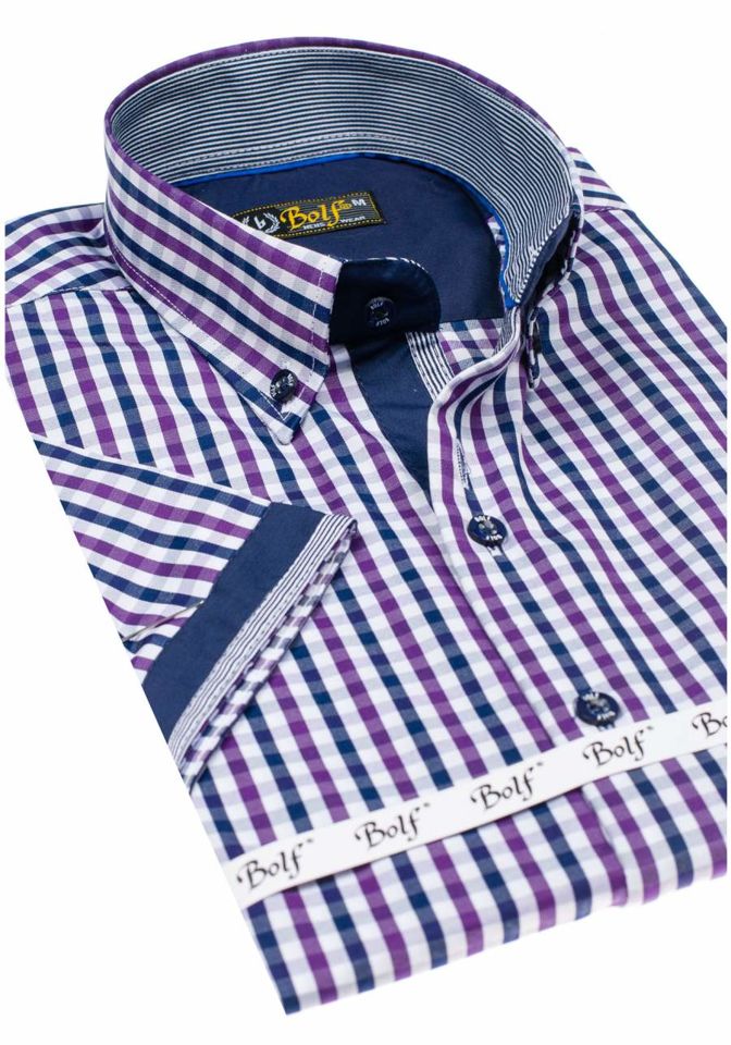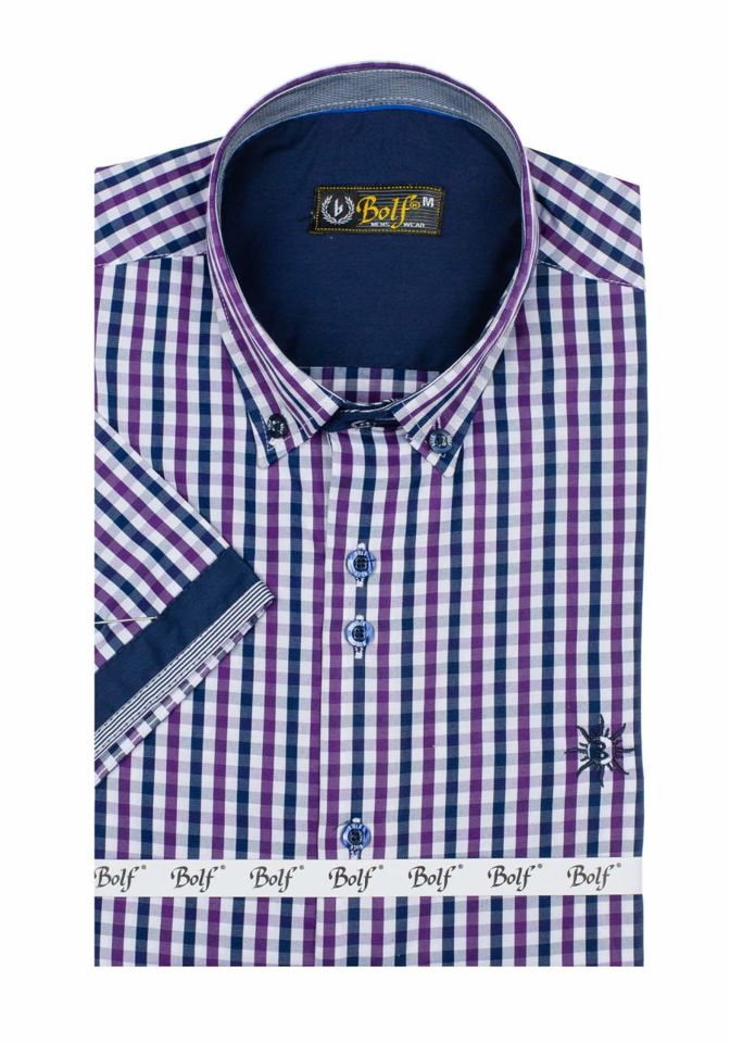 Mišljenja korisnika o Muška kockasta košulja kratkih rukava ljubičasta Bolf 4510
