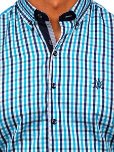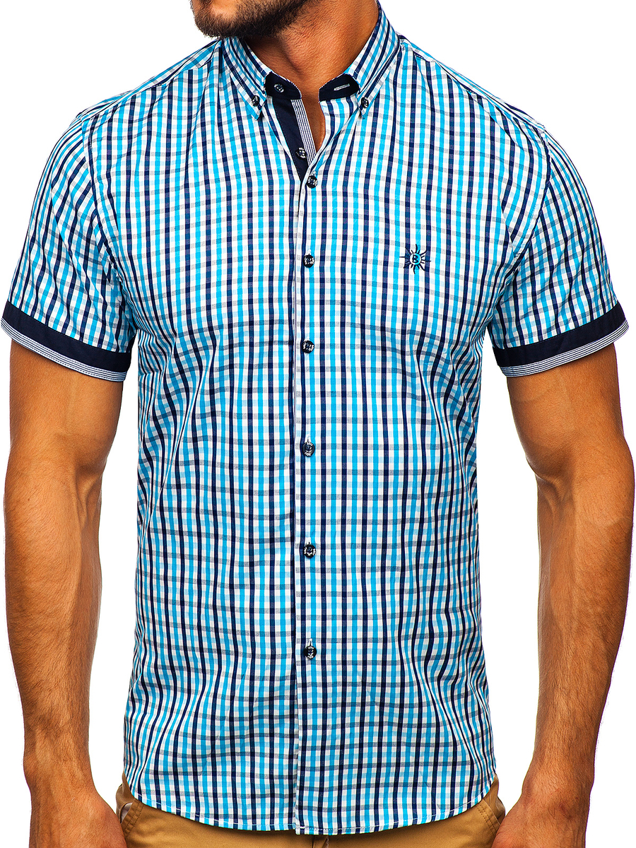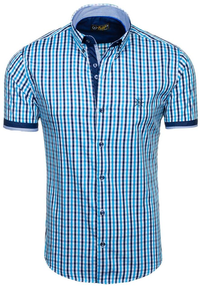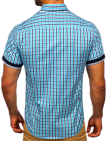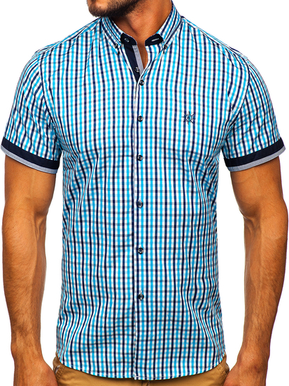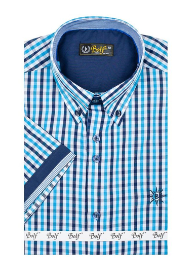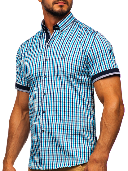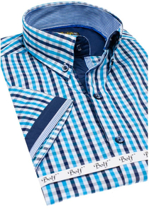 Mišljenja korisnika o Muška kockasta košulja kratkih rukava tirkizna Bolf 4510