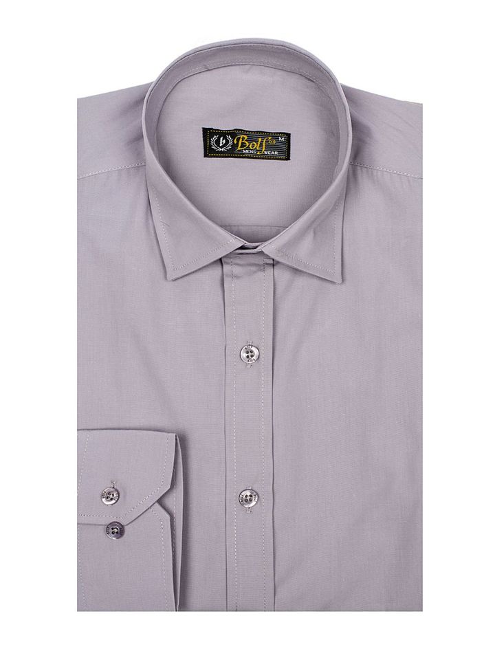 Siva muška elegantna košulja dugih rukava Bolf 1703 pozicija je koja bi trebala biti u ormaru svakog muškarca, a ne samo elegantnog muškarca. Ovaj model dostupan je u desetak više ili manje intenzivnih boja, što ga čini lako upariti s bezbroj casual i smart casual outfita. Obične muške košulje preporučuju se ljubiteljima minimalizma i klasične elegancije u modi. Udobne su i dobro sašivene. Definitivno must-have u ormaru svjesnog poslovnog čovjeka. Jednostavan, klasičan kroj u zanimljivim bojama čini ovaj model košulje savršenom kulminacijom mnogih svakodnevnih stilizacija. Košulja slim kroja, kopča se gumbima, ima praktičan zaobljeni porub. Rukavi su završeni širokim, podesivim manžetama koje se zakopčavaju na jedan gumb. Ima klasičan ovratnik s kratkim reverima.