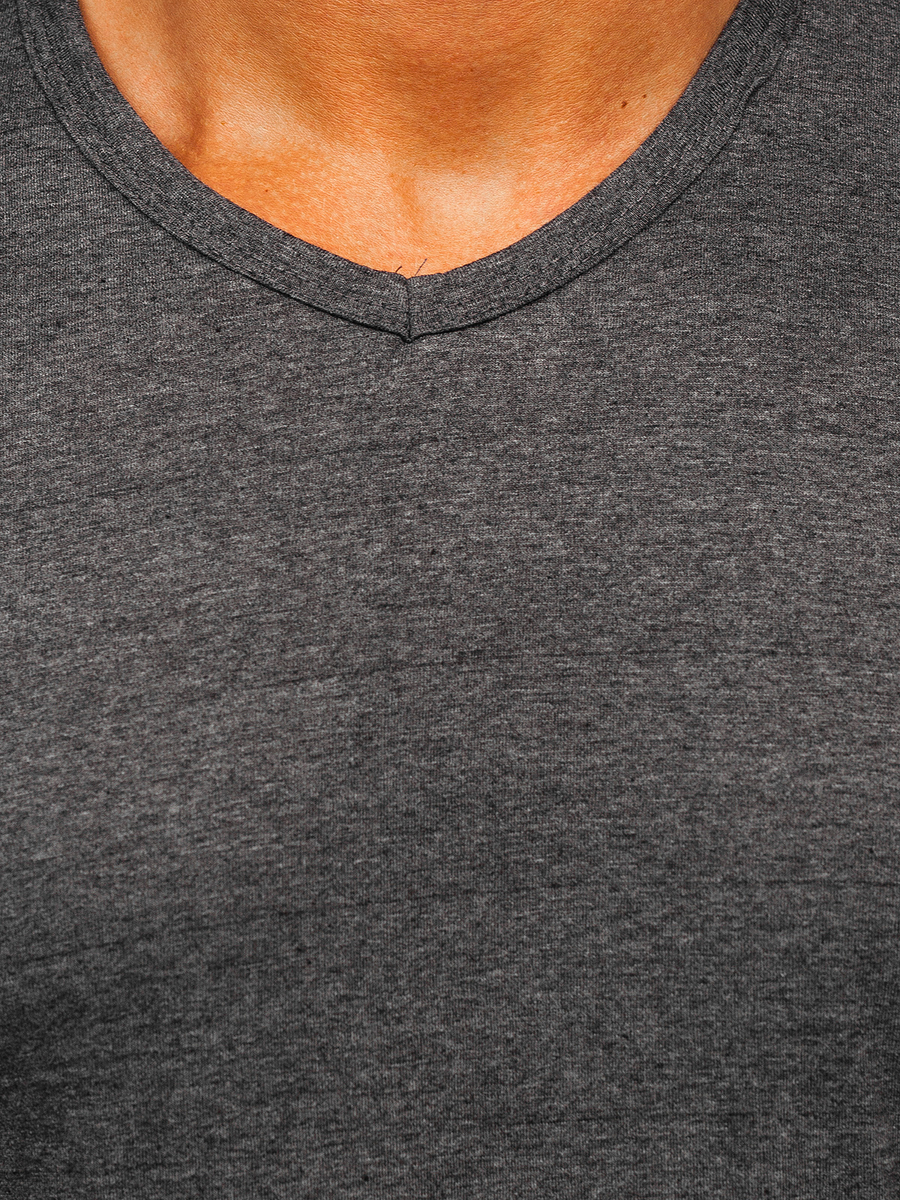 Gładki t-shirt Denley 192131 z dekoltem w serek. Koszulka w kolorze antracytowym. Ładnie dopasowuje się do każdej sylwetki i dobrze opina ciało, eksponując mięśnie. Jest wykonana z przyjemnego miękkiego materiału. Model ten występuje w kilku klasycznych kolorach, można go łączyć z wieloma innymi kolorami i wzorami.