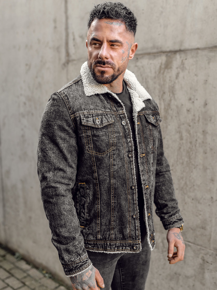 Mišljenja korisnika o Grafitna jakna od trapera trucker tip izolirana s ovratnikom od ovčje kože muška Bolf 1109