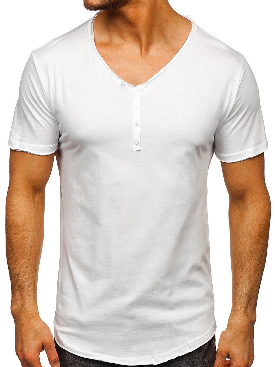 Mišljenja korisnika o Bijela pamučna muška majica V-izreza bez printa Bolf 4049