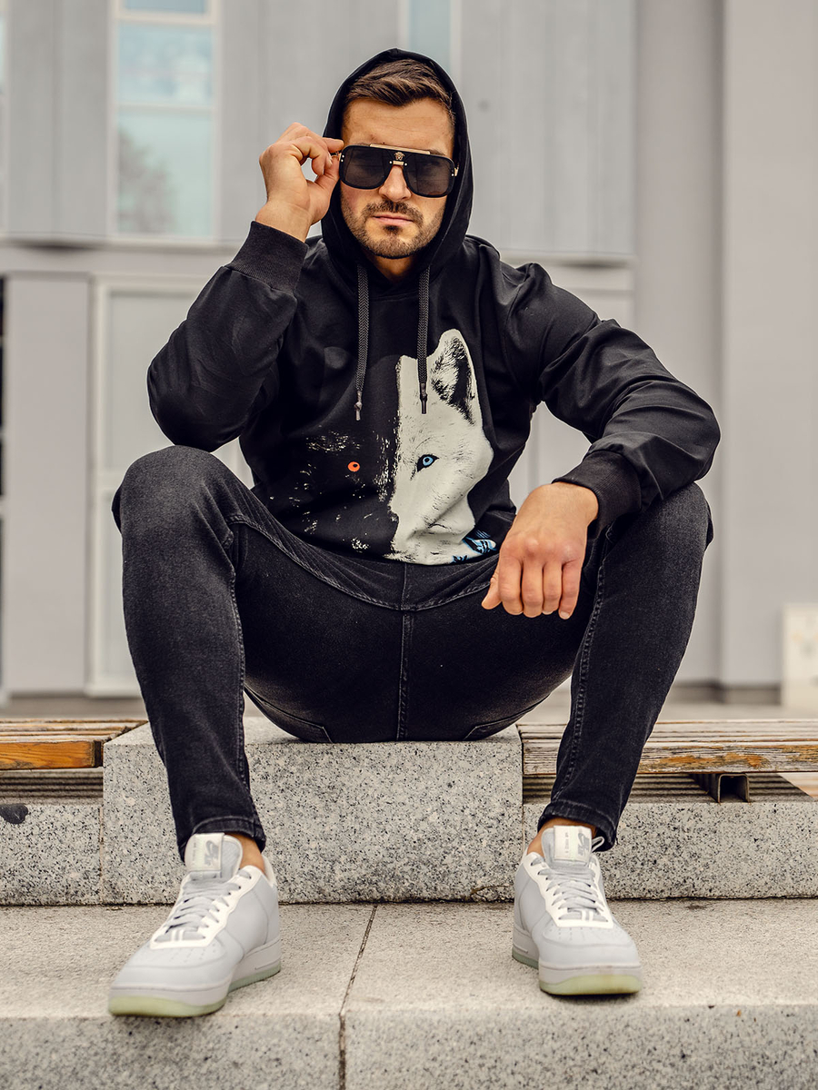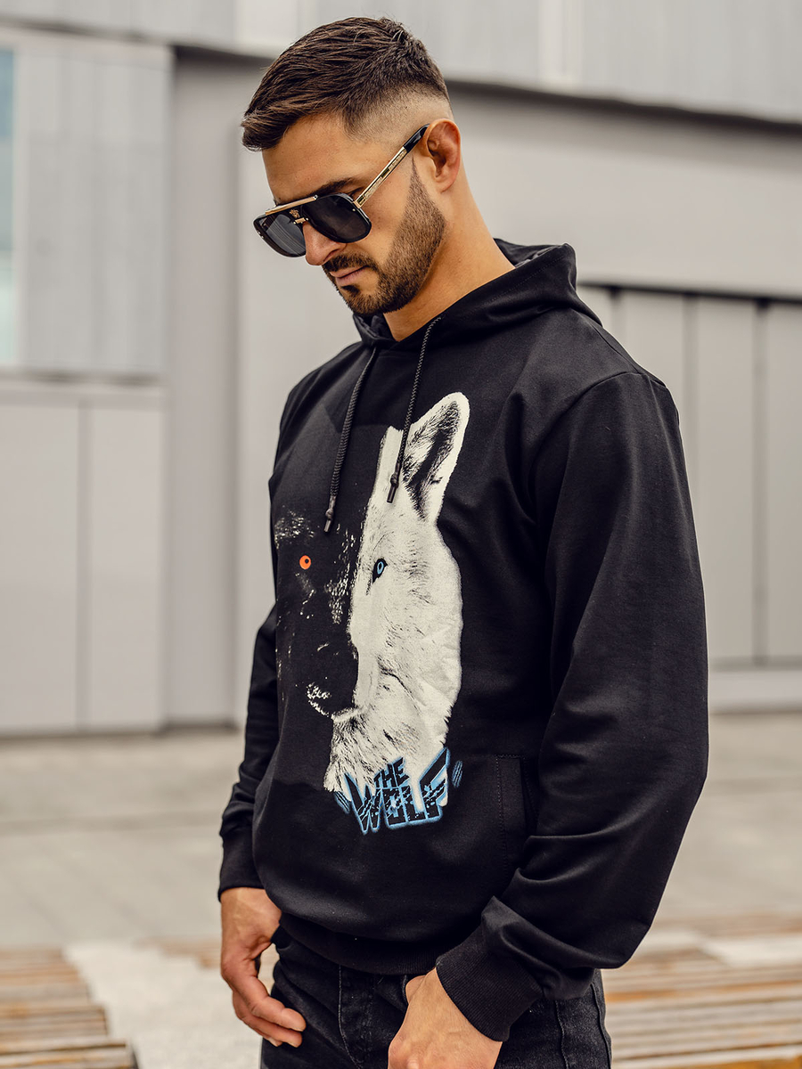 Mišljenja korisnika o Crna s printom dukserica muška s kapuljačom Bolf 6144