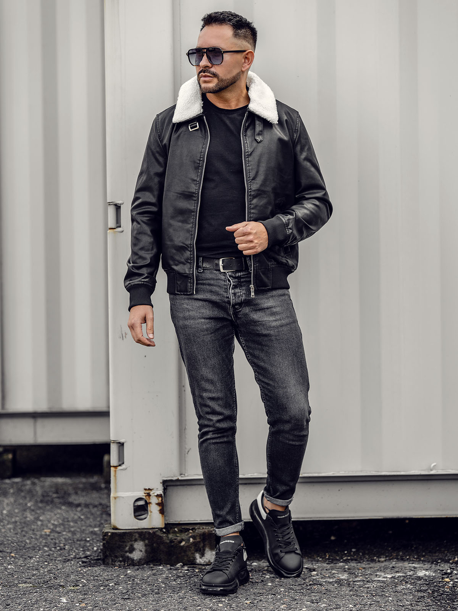 Mišljenja korisnika o Crna pilotska jakna od kože muška Bolf 1178