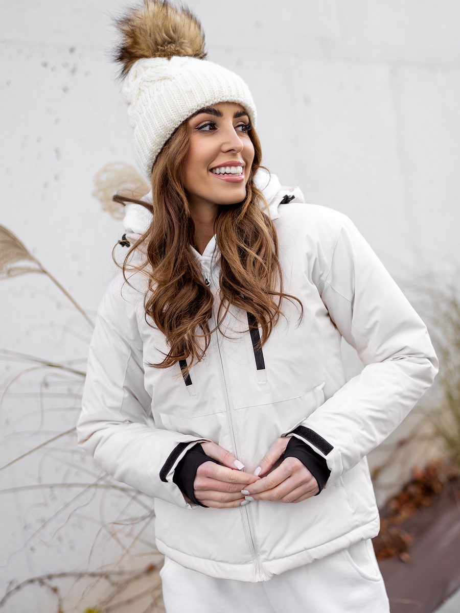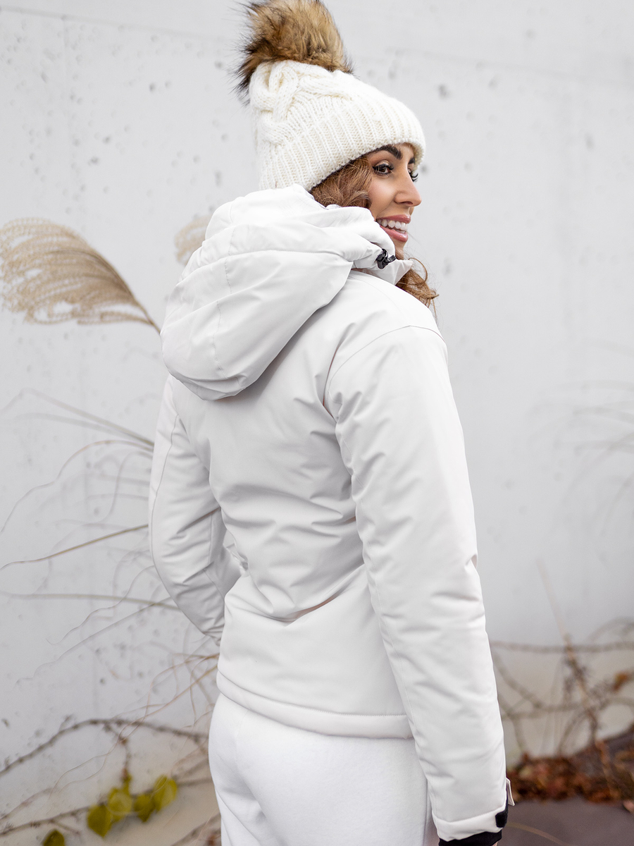 Ženska bijela zimska skijaška jakna Bolf HH012 topla je zimska jakna sportskog stila. Topla je i praktična, a također i vrlo učinkovita i u sjajnim bojama. Sigurno će se svidjeti ženama koje prate modne trendove. Kopča se patentnim zatvaračem. Ima odvojivu, podesivu kapuljaču. Jakna je glatka, izrađena od guste tkanine. Ima visoki stojeći ovratnik sa patentnim zatvaračem, koja će dodatno štititi od prodora hladnoće i vjetra. Jakna ima dva bočna džepa s kopčama, dva džepa na prsima s patentnim zatvaračem i jedan dodatni džep s patentnim zatvaračem na lijevom rukavu. Osim toga, ima i jedan praktičan džep s patentnim zatvaračem u koji možete sakriti mobilni telefon ili novčanik. Rukavi jakne su podesivi čičak trakom, završeni elastičnim utorom s unutarnje strane. Jakna je izolirana sintetičkim perjem, što je čini savršenom iu najhladnijim danima.