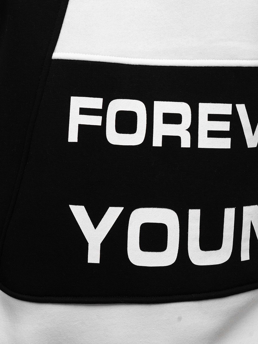 Mišljenja korisnika o Crno-bijela s printom Forever Young dukserica muška bez kapuljača Bolf 0003