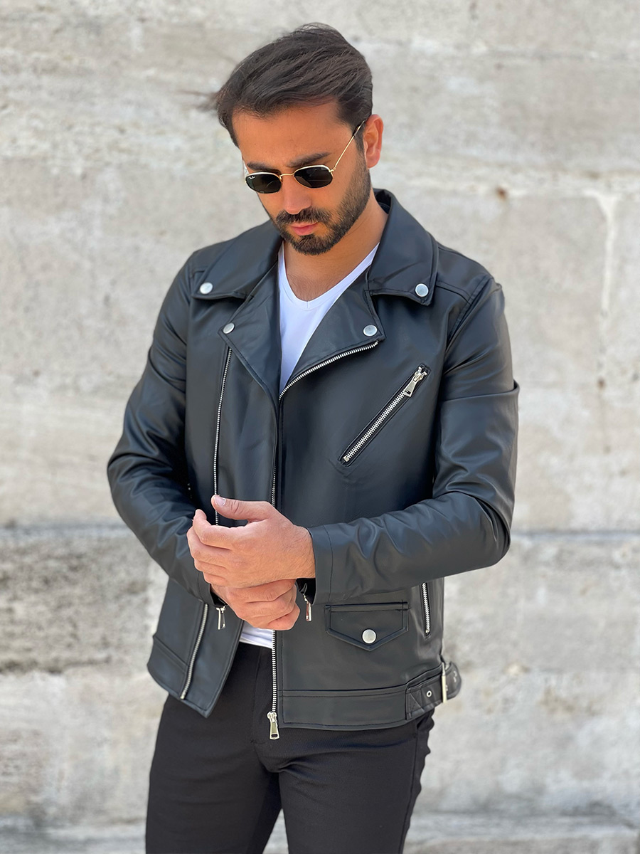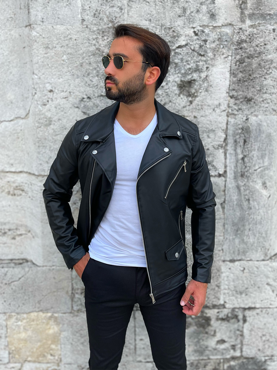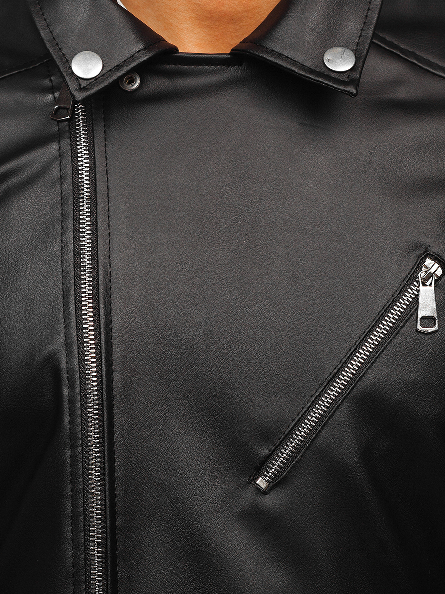 Mišljenja korisnika o Crna ramoneska jakna od kože muška Bolf 0006
