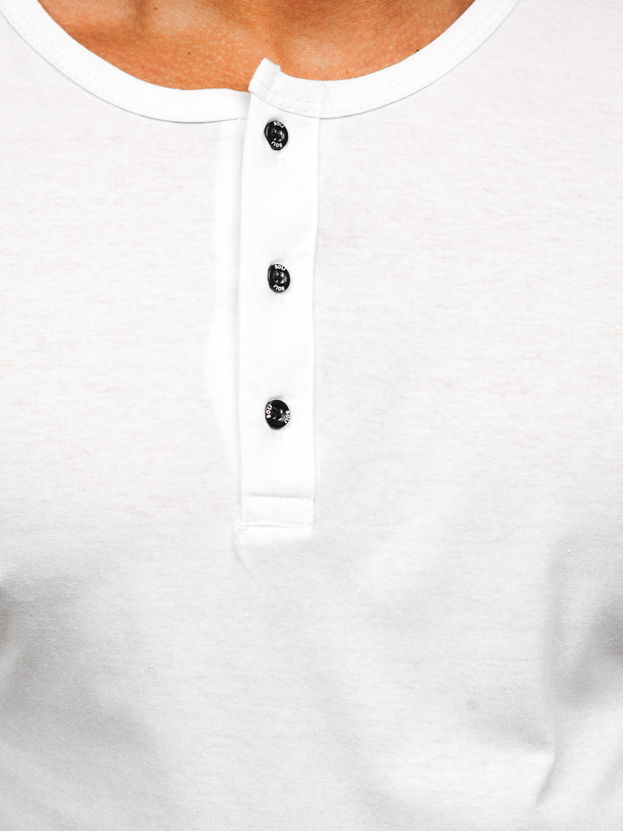 Bijele majice s dugim rukavima na pete, savršene za svakodnevnu upotrebu. Pamučne, tipa basic, s karakterističnim kopčanjem na gumb na dekolteu. Nosite bijele Bolf muške duge rukave uz traperice, chinos hlače ili joggere. Nosite sa jaknom ili duksericom.
