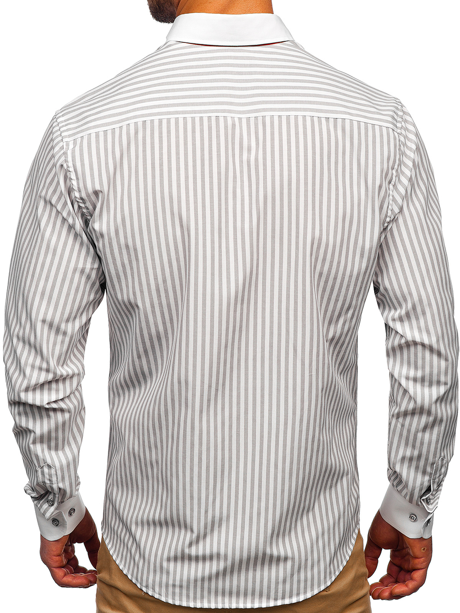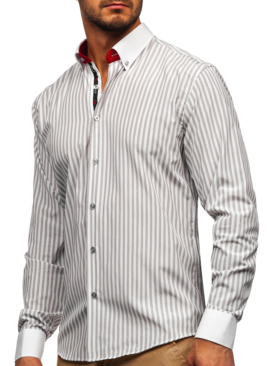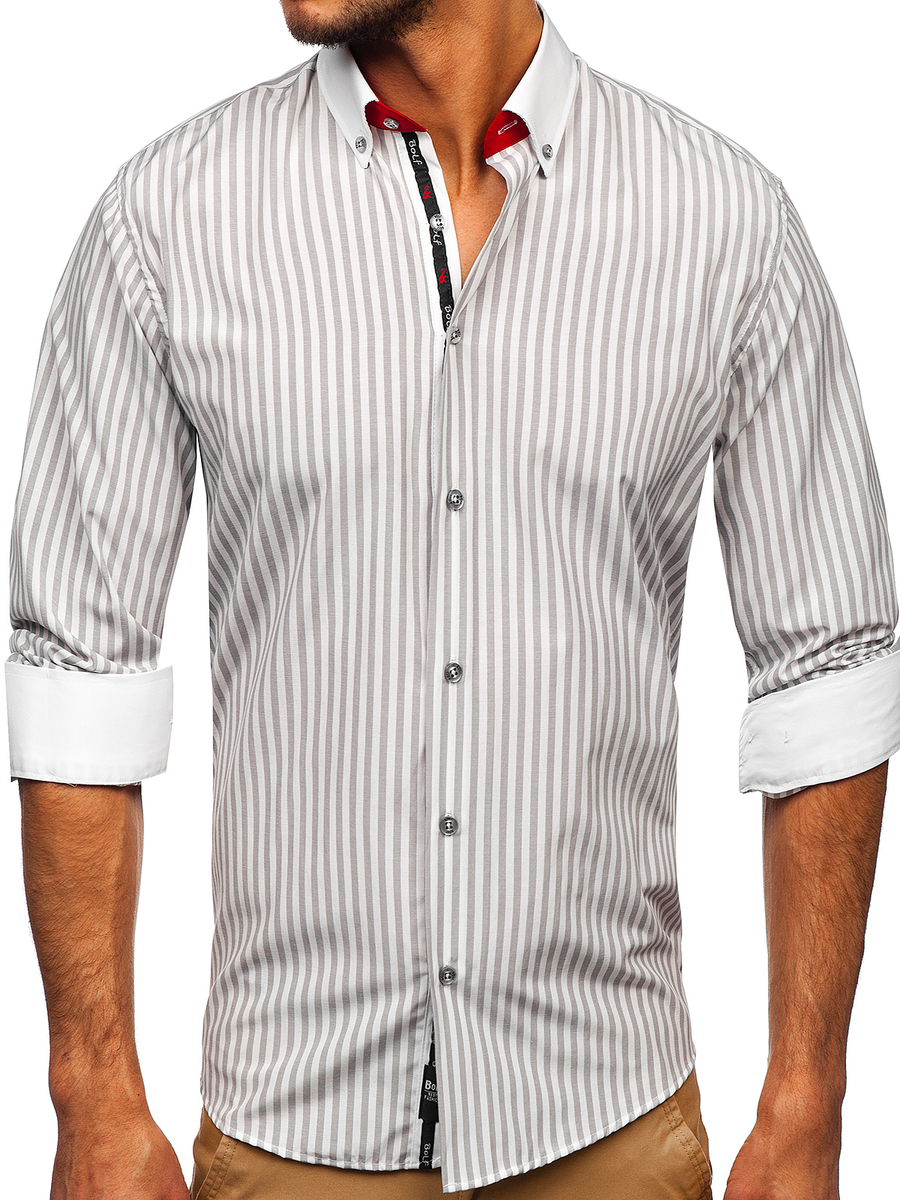 Mišljenja korisnika o Siva prugasta košulja muška dugih rukava Bolf 20727