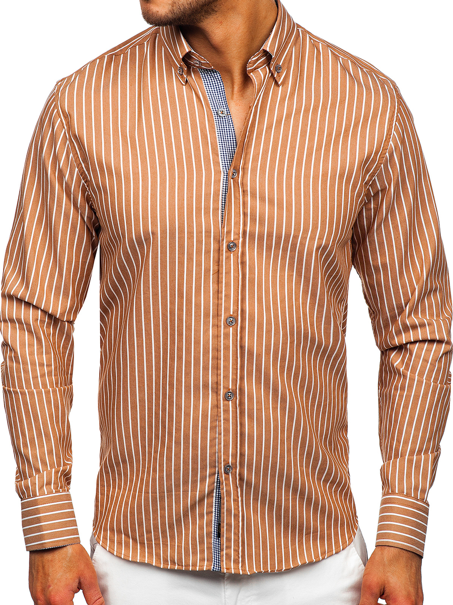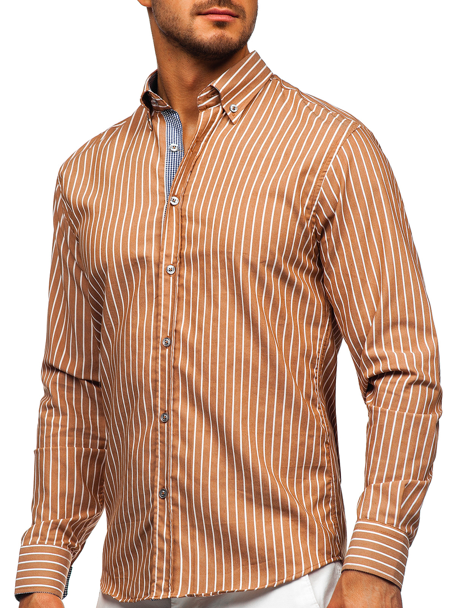 Mišljenja korisnika o Smeđa košulja muška s prugama dugih rukava Bolf 20731