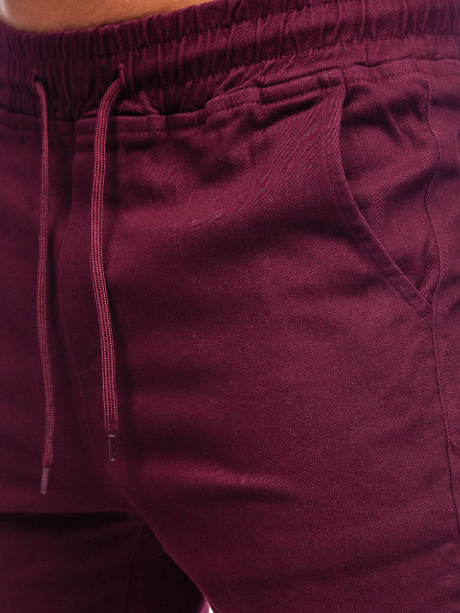 Bordo muške jogger hlače Bolf 707 savršene su za šetnju, izlet u grad ili sastanak s prijateljima. Joggerice su posljednjih godina vrlo popularne u muškoj modi, a sada su nezaobilazan komad u ormaru svake ljubiteljice street stylinga. Zahvaljujući prilagodbi struka s jakom uzicom i vezicom, proizvod će pristajati svakoj muškoj figuri. Praktičan element su dva prednja i dva stražnja džepa koji se kopčaju gumbom. Nogavice su završene praktičnom manžetom. Hlače su izrađene od 100% pamuka. Oni će savršeno pristajati uz sweatshirt, longsleev ili T-shirt.