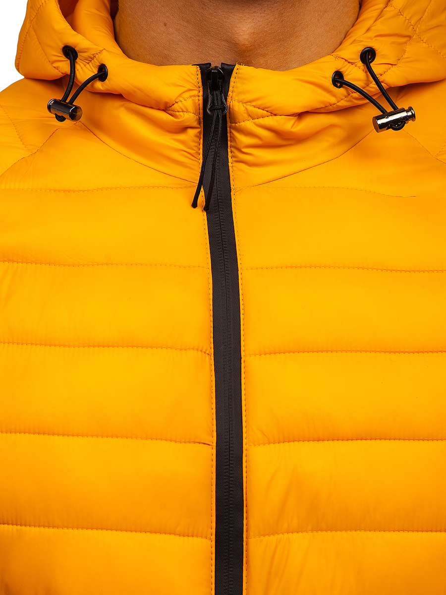 Muška žuta prošivena prijelazna jakna Bolf 13021 savršena je za kreiranje sportskih stilizacija. Udobna i praktična jakna je must have u ormaru svakog aktivnog muškarca. Možete nju staviti za trening ili šetnju. Zakopčava se patentnim zatvaračem. Ima podesivu i neodvojivu kapuljaču koja pruža izvrsnu zaštitu od kiše ili hladnoće. Dva džepa s patentnim zatvaračem praktičan su element proizvoda. Donji dio i rukavi su završeni elastičnim obrubom. Jakna je izrađena od 100% najlona pa je rastezljiva. Izgledat će sjajno uz traperice ili jogger hlače. .