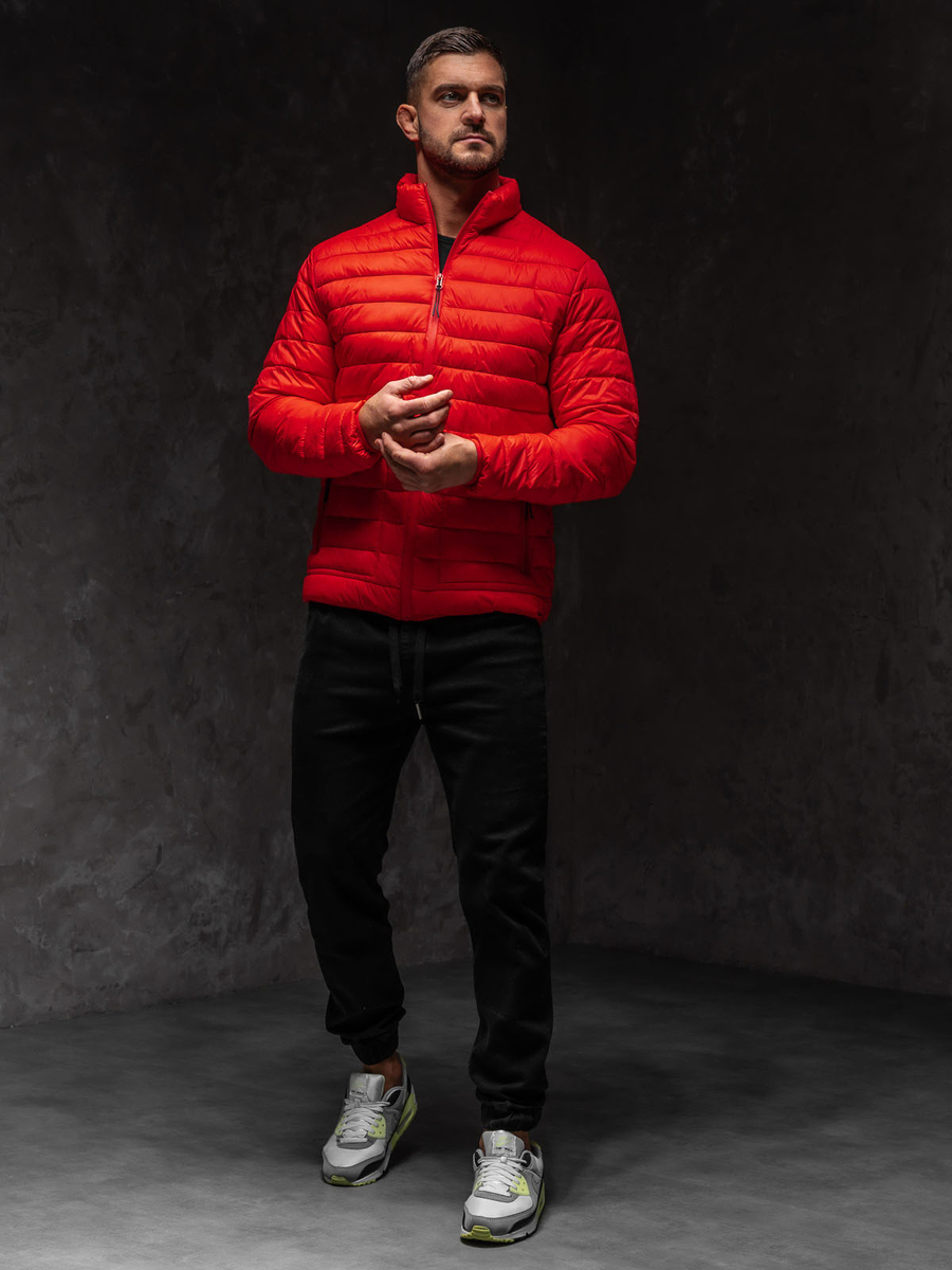 Crvena prošivena muška jakna Bolf 13007 savršen je odabir za svakog muškarca koji cijeni udobnost i dobar izgled. Jakna će izgledati dobro tijekom šetnje, izleta u grad ili sastanka s prijateljima. Kopča se patentnim zatvaračem i ima stojeći ovratnik koji štiti od mraza i vjetra. Funkcionalni element su dva vanjska i dva unutarnja džepa. Donji dio i rukavi su završeni elastičnim obrubom. Izrađen je od 100% najlona. Zajedno s trapericama ili joggericama stvorit će savršeno podudaranje.