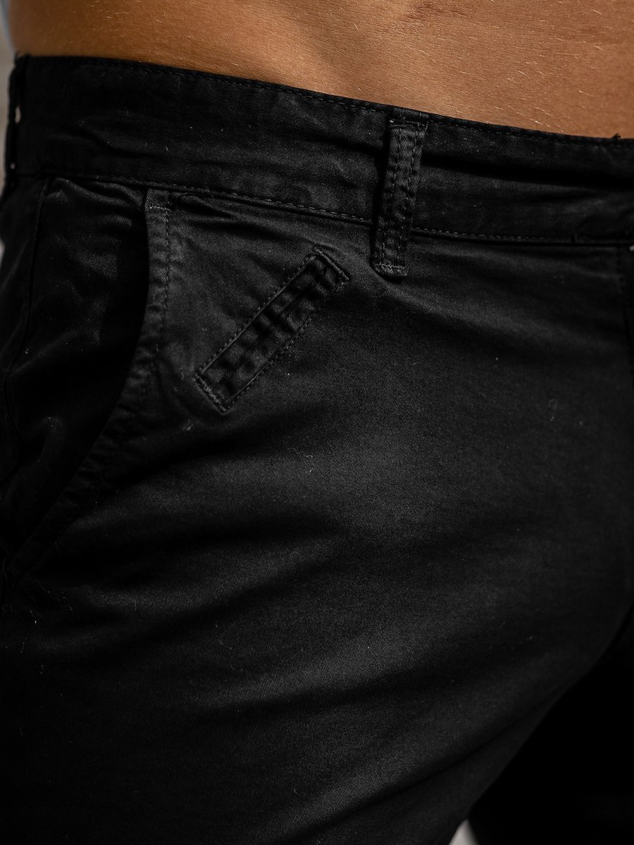 Crne muške kratke hlače Bolf 1142 ovogodišnji su ljetni prodajni hit. Kratke hlače se kopčaju patentnim zatvaračem i gumbom. Proizvod ima četiri džepa - dva sa strane, bez kopče, i dva straga, kopčaju se gumbom. Proizvod je dostupan u nekoliko boja. Kratke hlače su izrađene od vrlo kvalitetnog materijala. Sastoje se od 98% pamuka i 2% elastina. Mogu se koristiti u svakodnevnom i sportskom stilu. Savršene su za izlaske i jogging. Samo naprijed i kombinirajte ih s našom majicom s printom - bit će to savršen stil za izlazak s prijateljima. Odlično će funkcionirati i u kombinaciji s trenirkom bez kapuljače i bomber majicom.