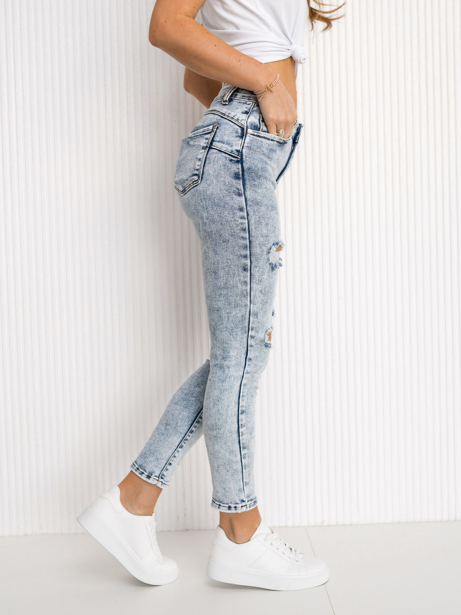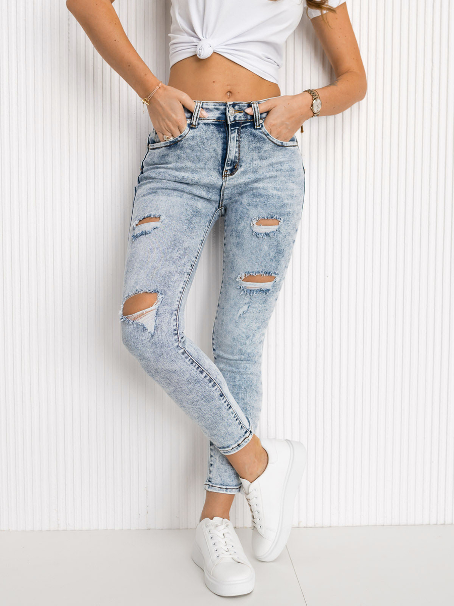 Plave ženske jeans hlače marke Bolf TR5819 savršeno pristaju uz figuru, ističući ženstvene oblike. Hlače imaju vrlo praktične džepove, tri sprijeda i dva straga. Moderne abrazije i sjenčanje na nogama daju im jedinstven izgled. Kopčaju se patentnim zatvaračem i gumbom. Izrađene su od 80% pamuka, 18% poliestera i 2% elastina pa su izuzetno udobne i pristajat će svakoj figuri. Traper hlače su univerzalna baza za izgradnju svakodnevnih stilizacija. Neobičan Regular/Push Up model savršeno pristaje ženskoj figuri. Možete ih nositi u šetnji, kupnji, na poslu ili u izlasku s prijateljima. Savršeno će pristajati uz T-shirt, laganu prijelaznu jaknu ili kožnu jaknu. U svakoj od ovih kombinacija lako je stvoriti jedinstven, originalan look koji će djelovati u mnogim situacijama.