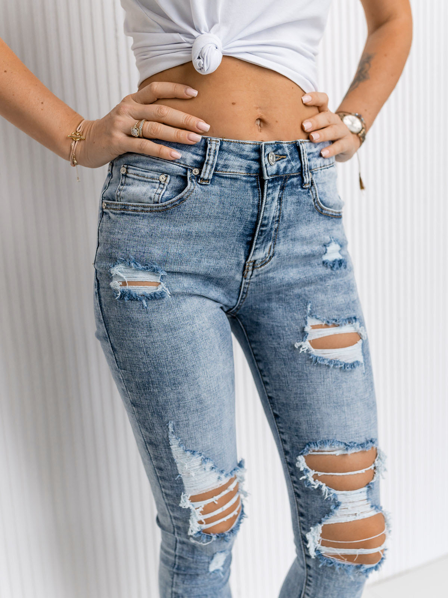 Plave ženske jeans hlače marke Bolf Y882-3 savršeno pristaju uz figuru, ističući ženstvene oblike. Hlače imaju vrlo praktične džepove, tri sprijeda i dva straga. Moderne abrazije i sjenčanje na nogama daju im jedinstven izgled. Kopčaju se patentnim zatvaračem i gumbom. Izrađene su od 98% pamuka i 2% elastina što ih čini iznimno udobnima. Traper hlače su univerzalna baza za izgradnju svakodnevnih stilizacija. Model Regular ima sužene nogavice, što savršeno pristaje ženskoj figuri. Možete ih nositi u šetnji, u kupovini, na poslu ili na izletu s prijateljima. Savršeno za majicu, laganu prijelaznu jaknu ili kožnu jaknu. U svakoj od ovih kombinacija lako je stvoriti jedinstven, originalan look koji će djelovati u mnogim situacijama.