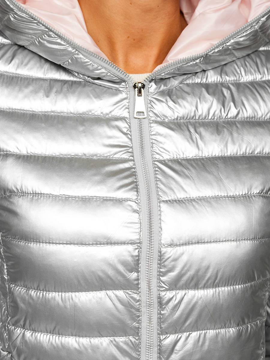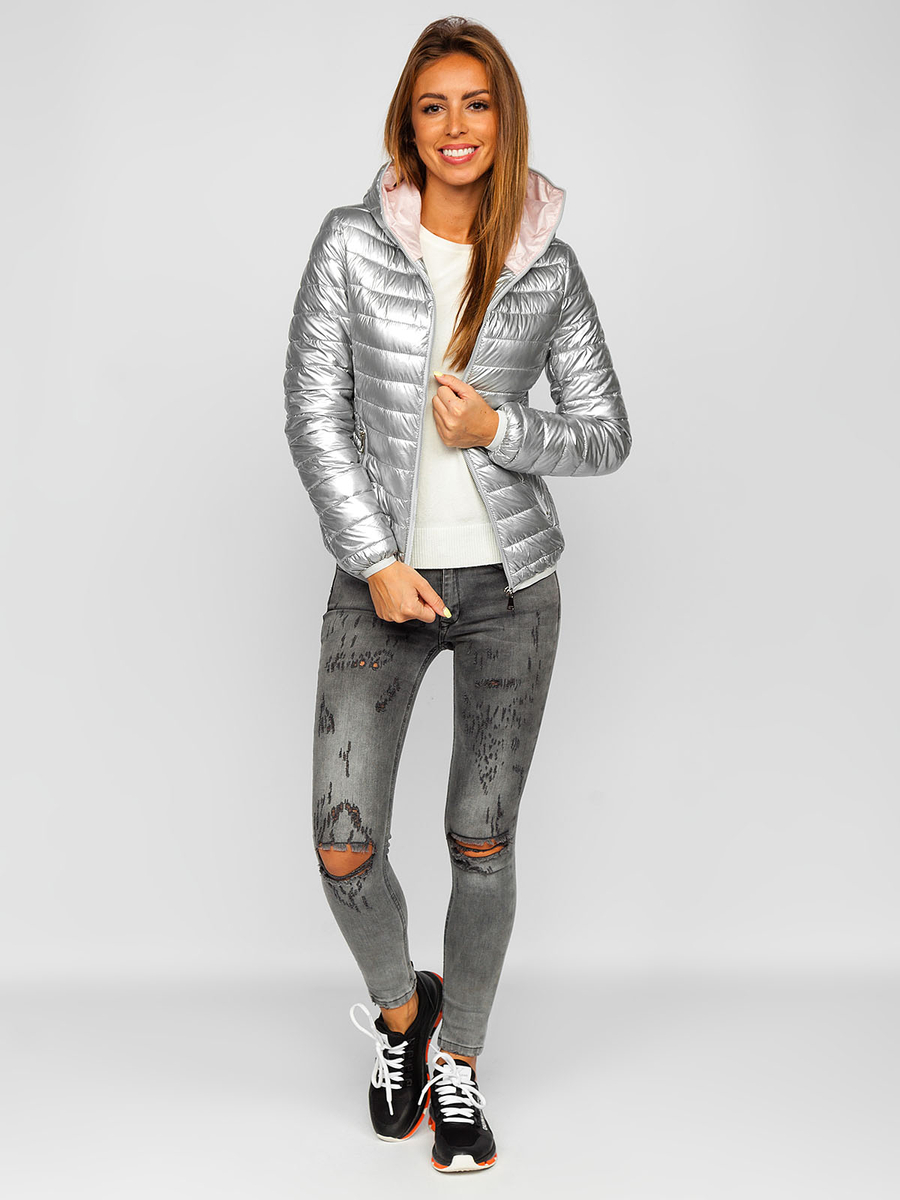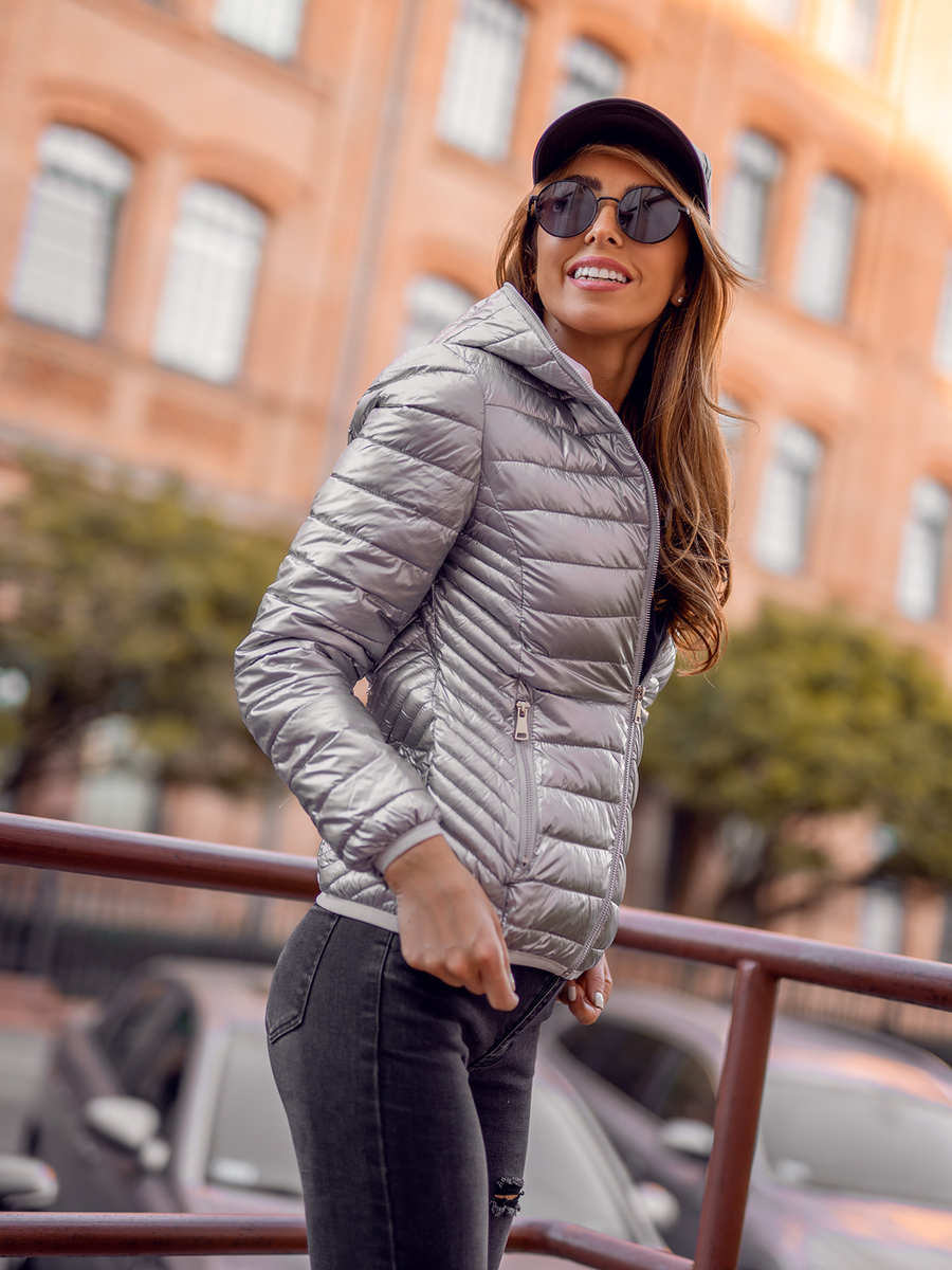 Ženska srebrna prošivena prijelazna jakna s kapuljačom Bolf B9561 savršen je izbor za žene koje cijene jednostavnost i funkcionalnost u jesenskim stilizacijama. Jakna se kopča prikladnim patentnim zatvaračem. Ima dva džepa s patentnim zatvaračima, u koje možete jednostavno smjestiti ključeve, dokumente, novčanik ili bilo koje druge potrebne sitnice. Rukavi i donji dio jakne obrađeni su elastičnim obrubom, zahvaljujući kojem pruža toplinu u mraznim danima. Proizvod se sastoji od 100% najlona, što ga čini fleksibilnim i udobnim, možete ga prilagoditi bilo kojoj figuri. Bezvremenski kroj znači da vam jakna može služiti mnogo sezona. Raznolikost boja omogućuje vam da ga uskladite s mnogim stilizacijama. Savršeno za spontane sastanke s prijateljima, kao i za svečanije prilike. Radit će u svim vremenskim uvjetima. Savršeno će odgovarati trapericama ili tajicama .