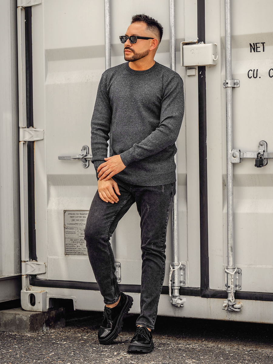 Crni muški pulover Bolf S8165 je džemper jednostavnog, klasičnog kroja. Proizvod ima okrugli izrez oko vrata s rubom. Donji dio i rukavi također su završeni manšetom, zahvaljujući kojoj se pulover prilagođava svakoj figuri, ostajući iznimno udoban.Izrađen je od 60% poliestera, 35% pamuka, 5% elastina. Ovaj model proizvoda dolazi u tri varijante boja, tako da ćete sigurno odabrati jednu za sebe. Zahvaljujući prigušenim bojama, džemper će se savršeno uklopiti u svjetlije i tamnije odjevne kombinacije. Stavite ga na posao, školu, u šetnju ili sastanak s prijateljima – odlično će funkcionirati, bez obzira na prigodu. Klasični džemper savršeno će se slagati s chions i kožnom jaknom, stvarajući savršen outfit za sastanak s prijateljima. Možete ga kombinirati s joggericama i bomber jaknom, stvarajući ležerniji outfit za večernju šetnju.