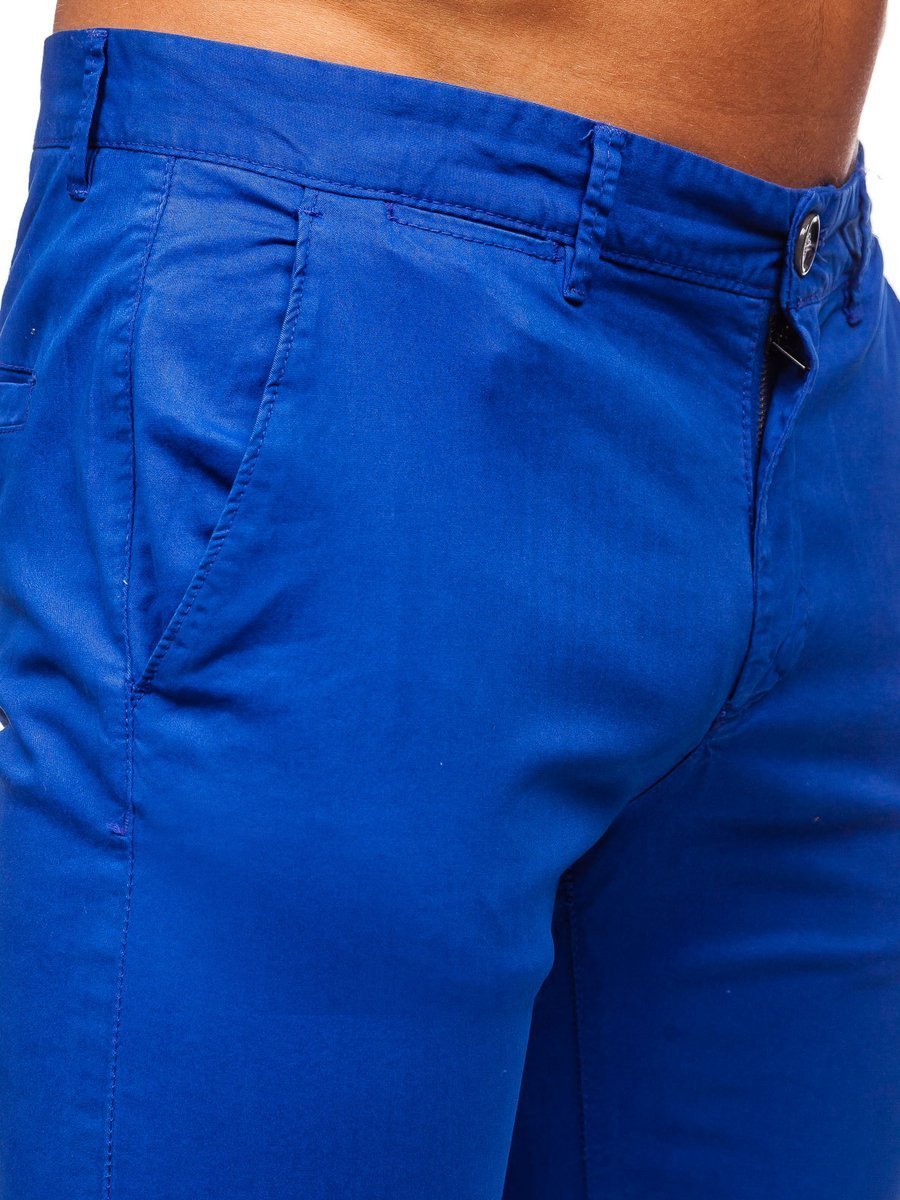 Kobalt plave muške chino hlače Bolf 1146 savršen su izbor za muškarce koji cijene modu i dobar look. Ovaj klasični model hlača od materijala trebao bi se naći u svakom muškom ormaru. Chino hlače dolaze u nekoliko zanimljivih boja pa se mogu kombinirati s mnogim drugim elementima outfita. Za model su karakteristične manžete na krajevima nogavica koje hlačama daju poslovičnu opuštenost.