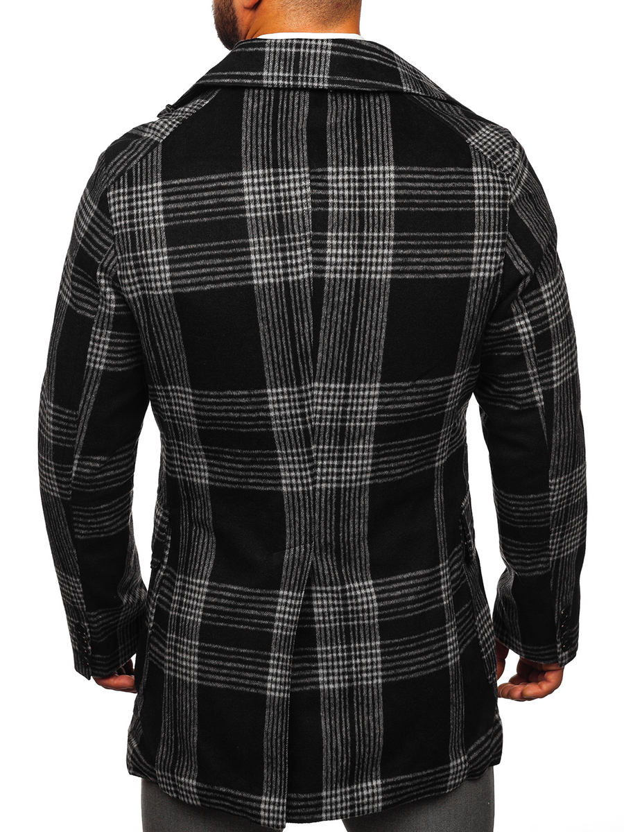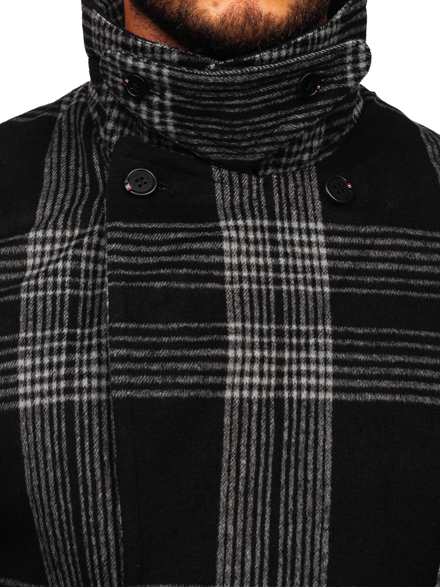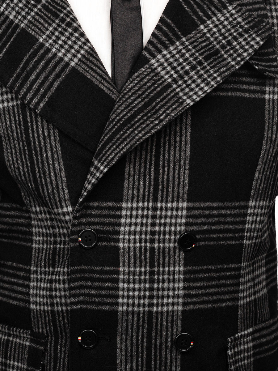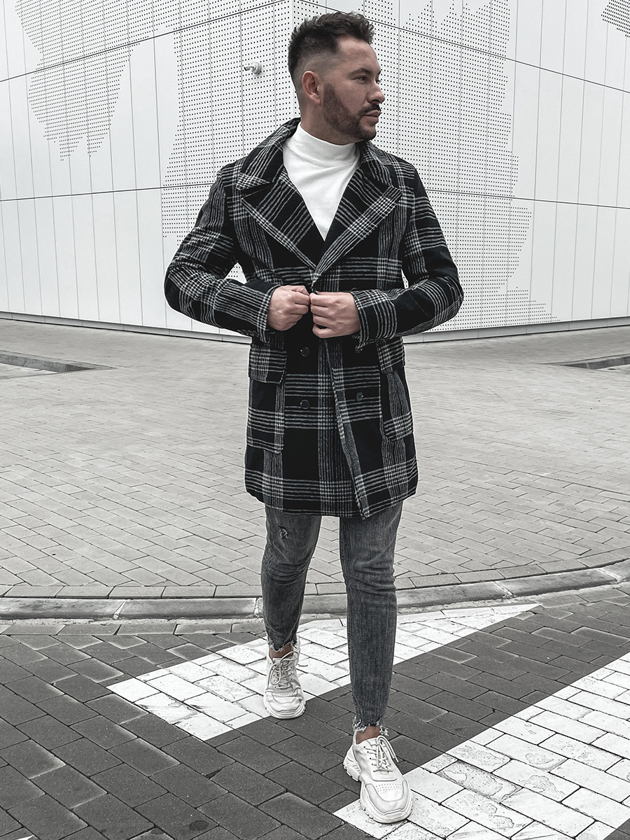Muški crni izolirani zimski kaput Bolf 1193 savršeno se uklapa u elegantanu i modernu mušku garderobu. Radi se o klasičnom, izoliranom kaputu s dvostrukim kopčanjem s gumbima. Njegov karakter naglašen je velikim, elegantnim ovratnikom. Ima dva vanjska džepa s gumbima i jedan unutarnji džep s gumbom u koji možete sakriti najvažnije i najvrjednije predmete ili novčanik. Dekorativni elementi su gumbi našiveni na krajevima rukava. Kaput je izrađen od visokokvalitetne tkanine. Vrlo je originalan, ali zahvaljujući kockastom materijalu ima i bezvremensku eleganciju. Savršeno za chinos , košulju i sako . Uparite ga s trapericama i dolčevicom a dobit ćete styling za svakodnevne izlaske.