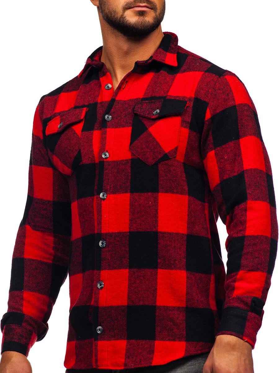 Mišljenja korisnika o Crno-crvena flanelska muška košulja rugih rukava Bolf 20723