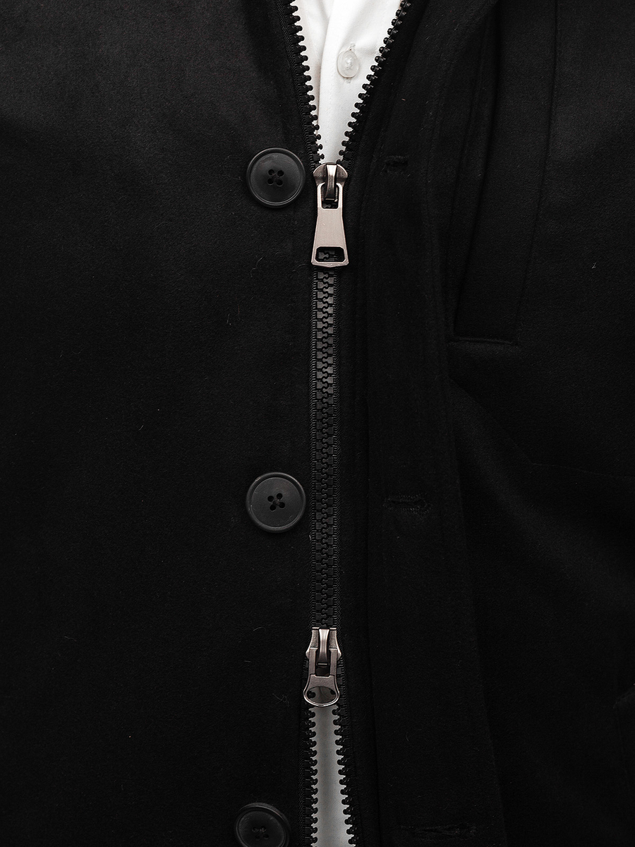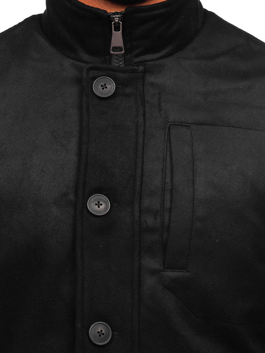 Muški crni zimski kaput sa stojećim ovratnikom Bolf M3129 univerzalni je kaput koji će se savršeno uklopiti u ormar elegantnog i modernog muškarca. Zakopčava se patentnim zatvaračem i gumbima. Ima ovratnik, dva vanjska džepa i jedan na prsima. Osim toga, ima još jedan unutarnji džep. Dekorativni element je ukrasna kopča s gumbima na rukavima. Kaput izgleda sjajno i zakopčan i otkopčan. Izrađen je od visokokvalitetne tkanine. Vrlo je originalan, ali ima i bezvremensku eleganciju. Savršeno za stiliziranje uz chino hlače , košulju i sako , kao svečaniju odjeću. Kombinirajte ga s trapericama i džemperom za casual outfit look.