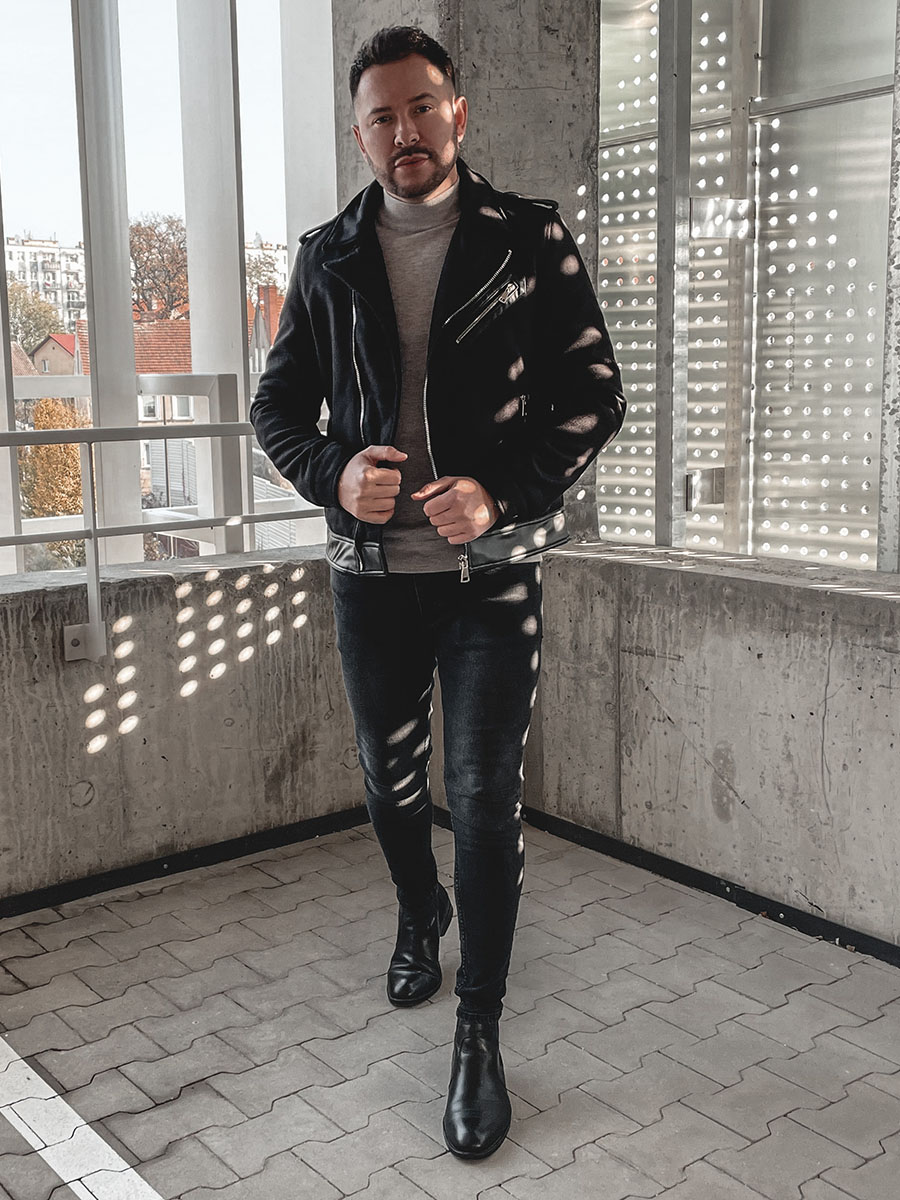 Muška crna bikerica jakna 79M15501 klasičnog je ravnog kroja. Zakopčava se patentnim zatvaračem, ima ovratnik. Epolete na ramenima daju mu jedinstven karakter. Ima tri vanjska džepa s patentnim zatvaračima i jedan unutarnji džep bez kopčanja. Rukavi podesivi s gumbima i ravnim rubom savršeno pristaju uz tijelo jakne bikerice. Casual stil jakne omogućuje vam stvaranje mnogih zanimljivih stilova s njim. Savršeno za hladnije dane. Za sastanak s prijateljima, uparite jaknu s trenirkom i trapericama . Kombinirajući proizvod s džemperom i jogger hlačama , dobit ćete savršen izgled za hladnije dane.