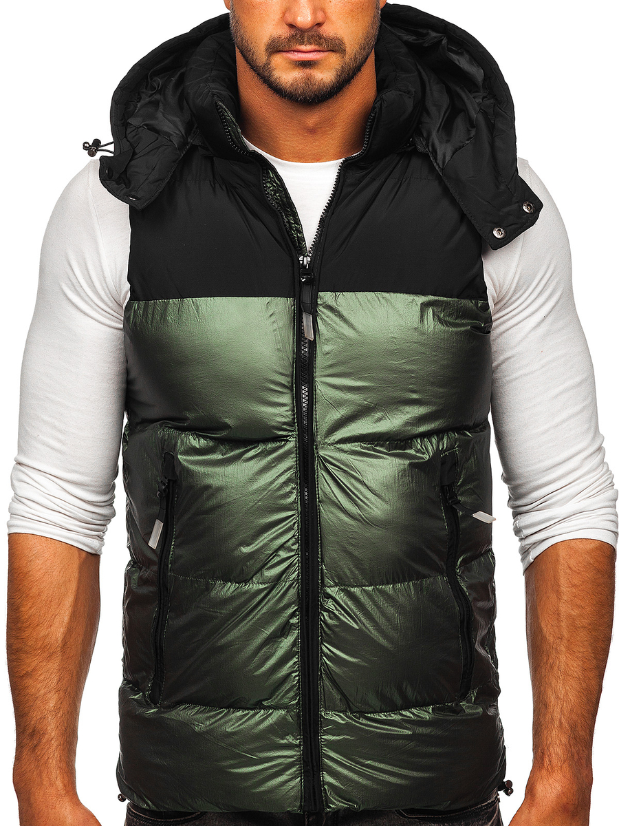 Zeleni prošiveni prsluk muški s kapuljačom Bolf 13079 bit će savršen za jesenske i proljetne stilizacije. Prsluk ima patent zatvarač, odvojivu kapuljaču i ovratnik - zahvaljujući takvim elementima, vrlo je praktičan proizvod. Ima dva vanjska džepa s patentnim zatvaračima i jedan unutarnji džep, u koji možete sigurno pohraniti najpotrebnije stvari, poput telefona, novčanika ili dokumenata. Prsluk je dostupan u nekoliko boja, sportskog je, jednostavnog kroja. Prsluk će biti savršen za muškarce koji vole sportske aktivnosti. Također ćete ga koristiti svakodnevno tijekom putovanja u grad, susreta s prijateljima ili večernje šetnje. U kombinaciji s longsleeve majicom i jogger hlačama dobit ćete outfitsku stilizacijiu. Također će biti savršen za stylizaciju uz trenirke i traperice .