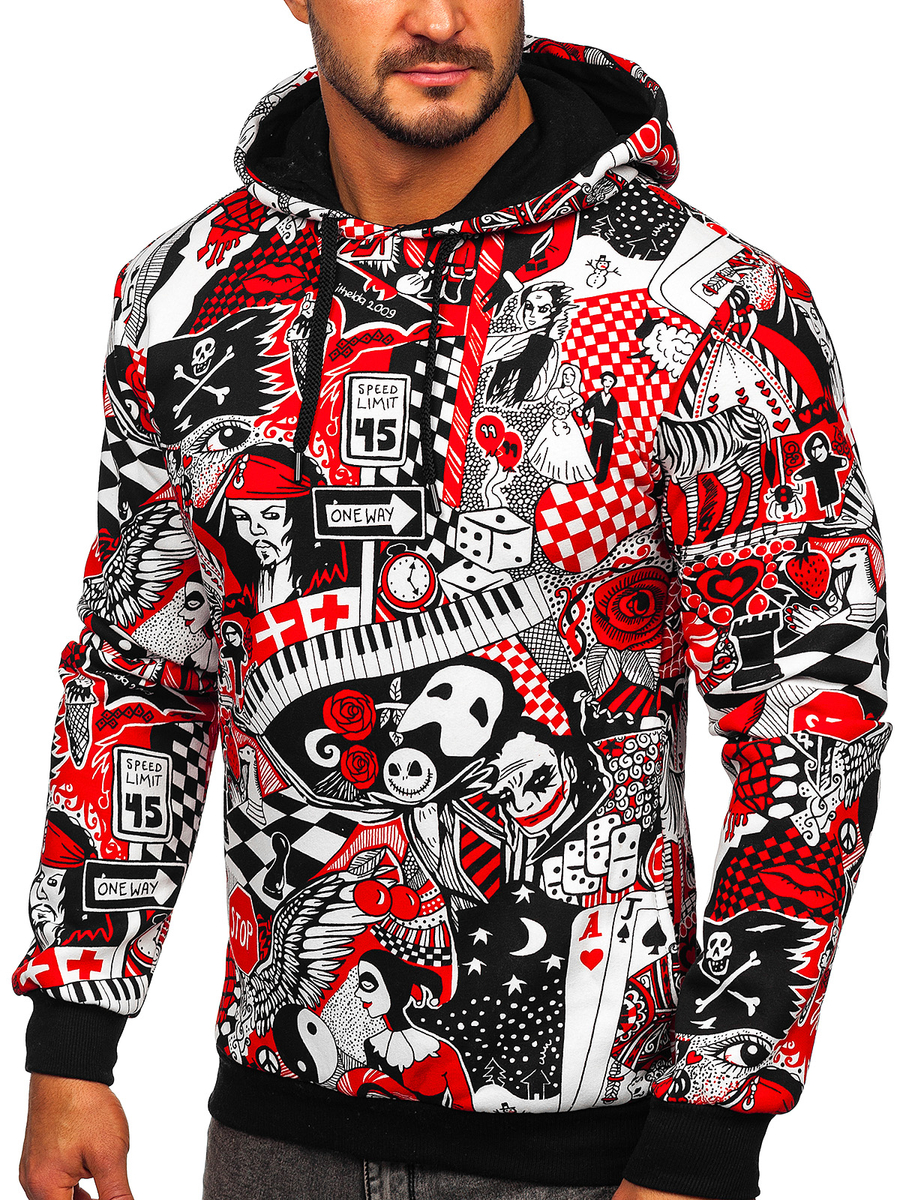 Crvena muška dukserica s kapuljačom s printom Bolf 141035 najbolji je izbor za muškarce koji cijene moderan izgled i udobnost. Dukserica ima originalan print na cijeloj površini, zahvaljujući čemu dobiva svoj jedinstveni karakter. Dolazi u nekoliko zanimljivih varijanti boja. Rukavi i donji dio trenirke završeni su praktičnim remenom. Ovaj model je savršen za pobornike aktivnog načina života. Savršeno za zahtjevan trening, trčanje ili posjet teretani. Materijal od kojeg je dukserica izrađena omogućit će vam da se u njoj osjećate ugodno. Kreirajte svoj sportski izgled uz sportskim hlačama i vjetrovkom . Univerzalnost proizvoda također vam omogućuje da sastavite svakodnevni stil koji možete koristiti kada izlazite s prijateljima ili idete na vikend putovanje. Kombinirajte originalnu trenirku s modernim trapericama i traper jaknom za bezvremenski stil.