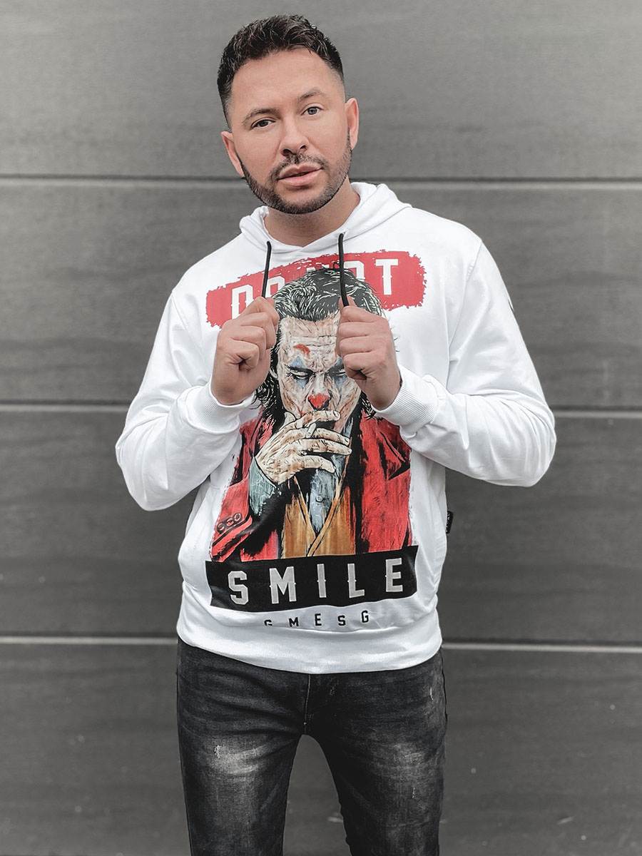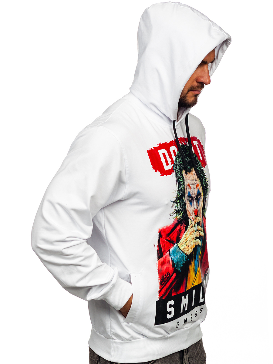 Mišljenja korisnika o Bijela s printom dukserica muška s kapuljačom Bolf 6384