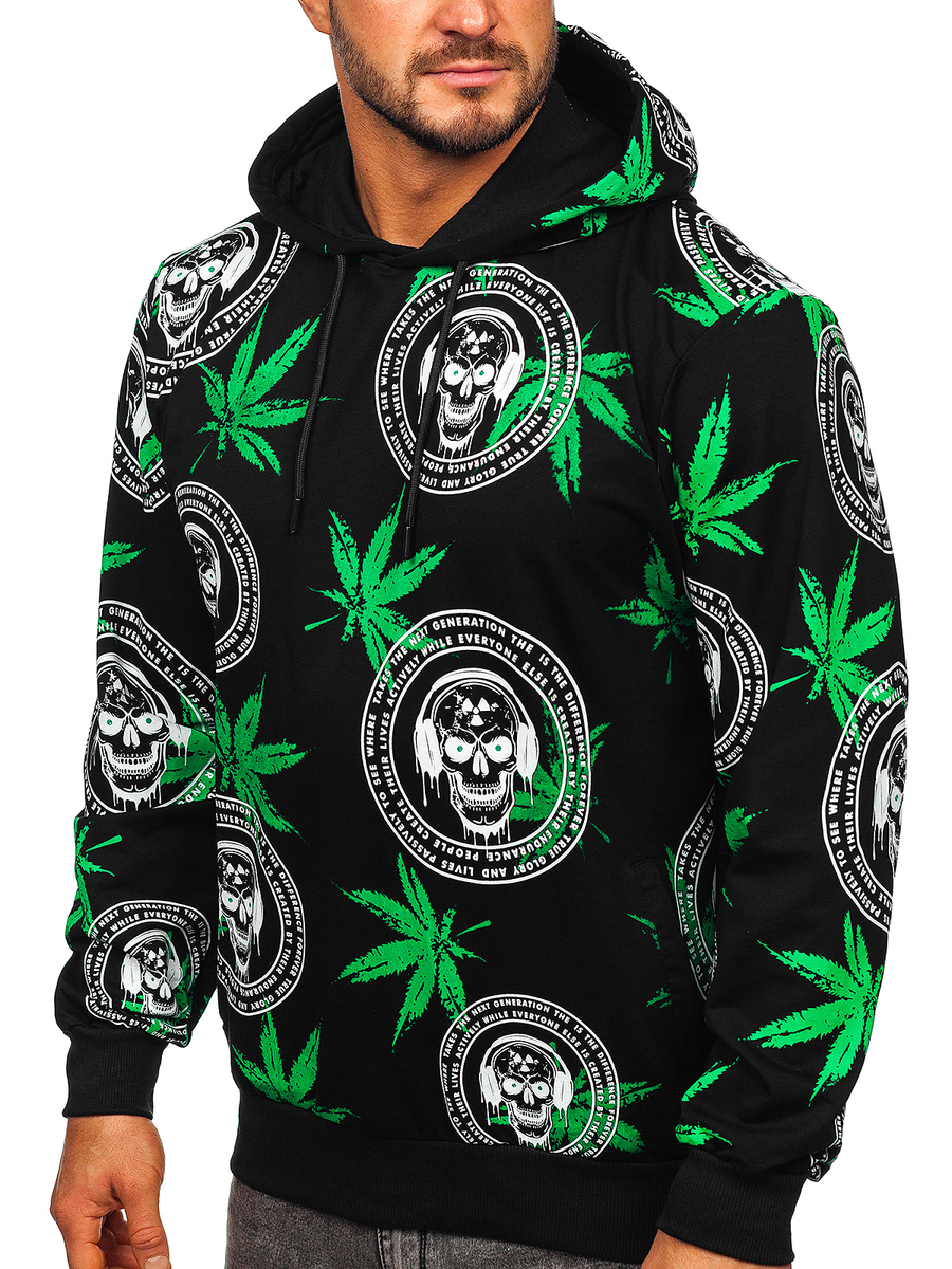 Muška crna dukserica s printom s kapuljačom Bolf 6424 odličan je izbor za hladnije dane. Majica ima dvoslojnu podesivu kapuljaču. Rukavi i donji dio obrađeni su remenom koji štiti od hladnoće. Izrađen je od 73% pamuka, 22% poliestera i 5% elastina, što ga čini vrlo ugodnim na dodir. Ovaj model se ističe originalnim, dekorativnim printom na prednjoj i stražnjoj strani. Njegova dva bočna džepa bez kopčanja dodaju praktičnosti. Kapuljača će raditi u bilo koje doba godine i u svim okolnostima. Stavite ga tijekom sportskih aktivnosti, šetnje ili gradskog putovanja. Za sastanak s prijateljima odlično će pristajati uz traperice , cargo hlače ili joggerice . Kombinirajte ga s trenirkama i sportskom jaknom za sportski izgled.