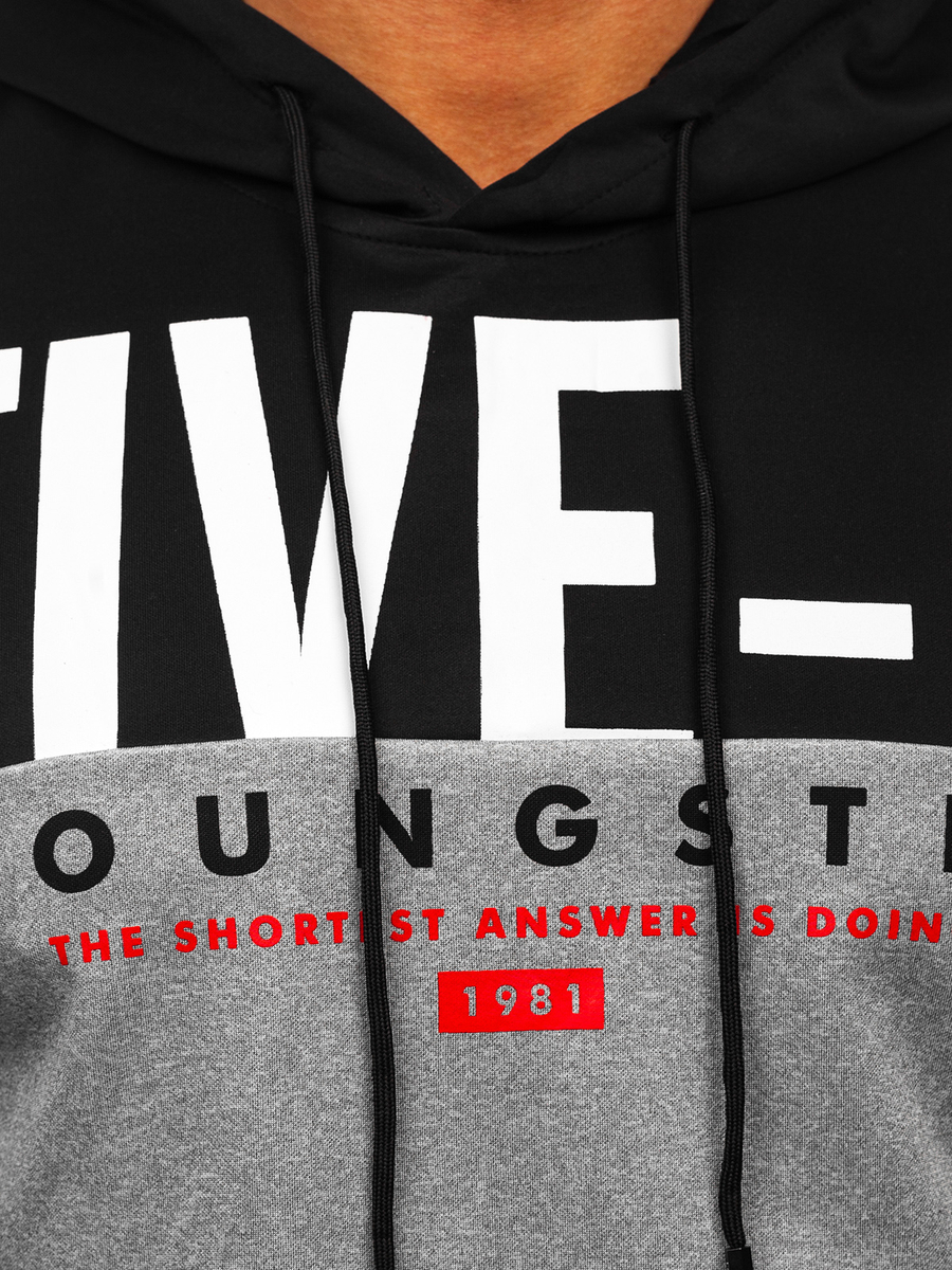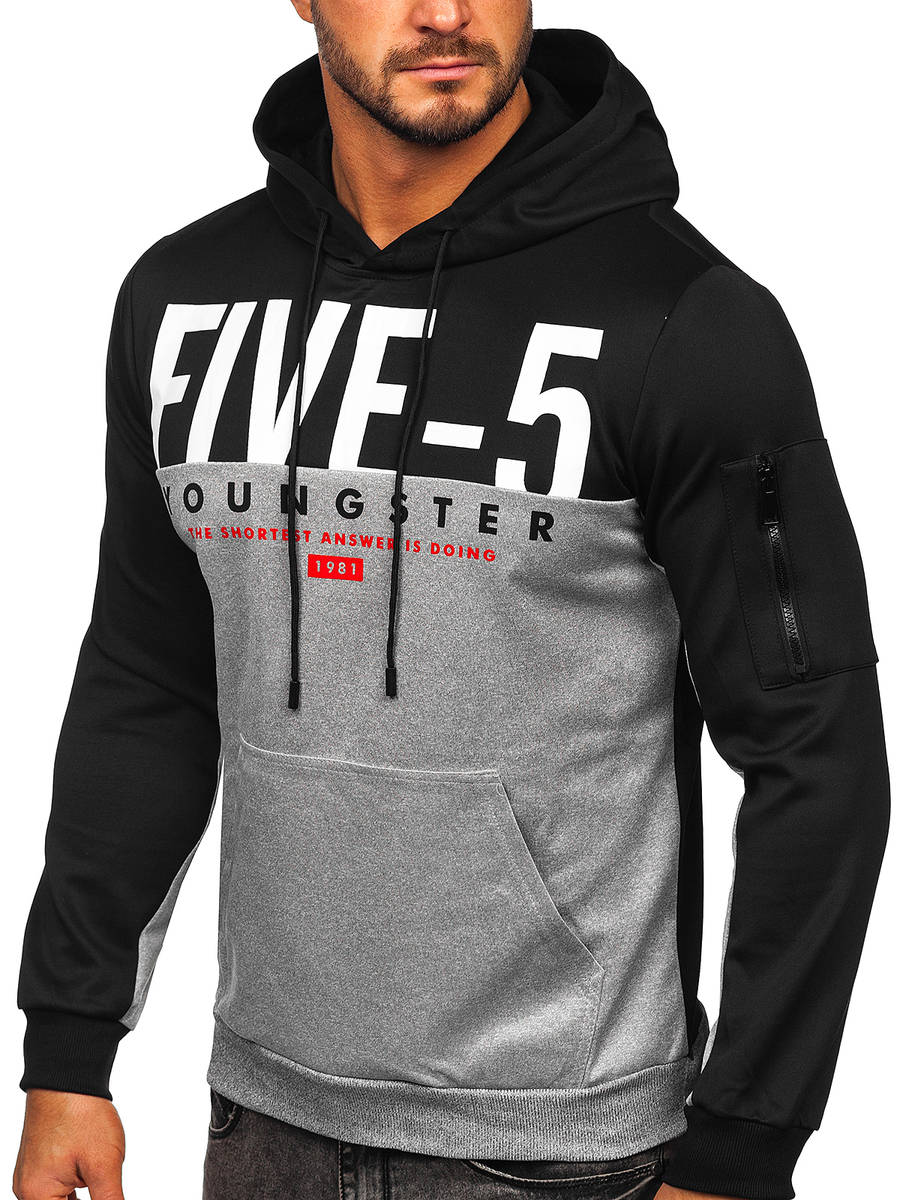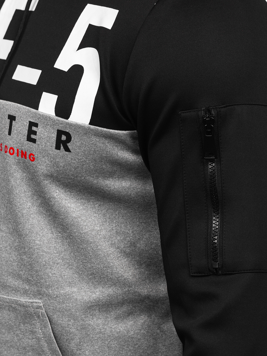 Siva muška majica s kapuljačom s printom Bolf HY972 izvrstan je izbor za muškarce koji cijene moderan izgled i udobnost. Sweatshirt ima originalan print na prednjoj strani, što mu daje jedinstven karakter. Dolazi u tri varijante boja. Rukavi i donji dio trenirke završeni su rubom. Majica ima praktičan klokan džep i dvoslojnu podesivu kapuljaču. To je savršen model za pobornike aktivnog načina života. Možete ga staviti na zahtjevne treninge, trčanje i druge aktivnosti na otvorenom. Materijal od kojeg je dukserica izrađena omogućit će vam da se u njoj osjećate ugodno. Ako cijenite udobnost, stvorite vlastiti sportski izgled s trenirkama i prslukom . Raznovrsnost proizvoda također vam omogućuje da sastavite casual outfit koji možete koristiti kada izlazite s prijateljima u grad ili idete na vikend izlet. Trenirku kombinirajte s trapericama , majicom i kožnom jaknom .