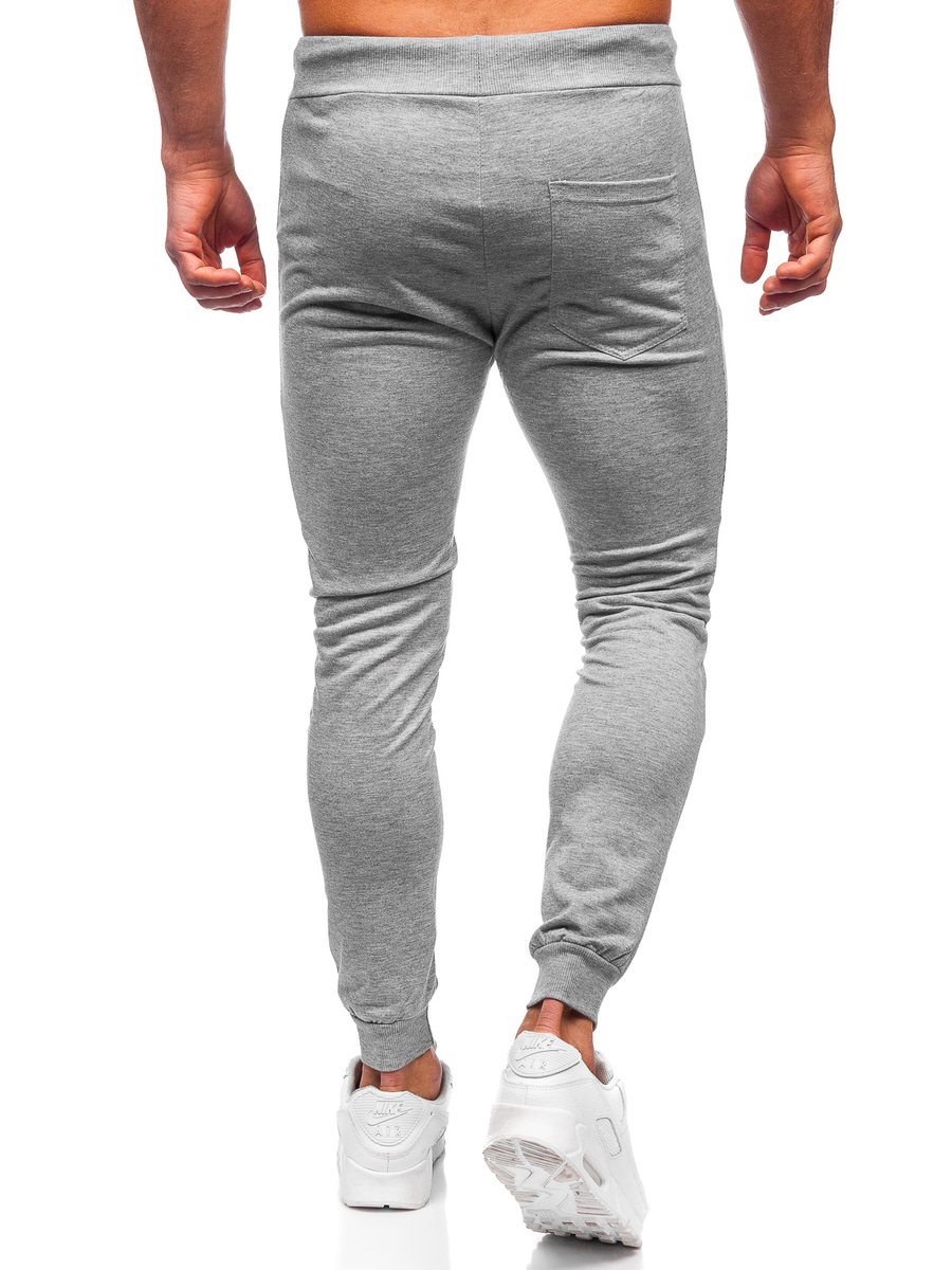 Muške sive trenirke Bolf HW2351 savršen su odabir bez obzira na godišnje doba. Hlače su podesive u struku konopom i jakim pojasom, zahvaljujući kojima ih možete prilagoditi kako bi savršeno pristajale vašoj figuri. Na prednjoj strani nalaze se dva džepa s patentnim zatvaračem i dodatni džep na stražnjoj strani. Jednostavan kroj i manžete na nogavicama daju im sportski izgled, koji ujedno griju u hladnijim danima. Ovaj model ima ukrasan print na nogavicama. Proizvod je izrađen od nježne, ugodne na dodir tkanine koja savršeno pristaje uz tijelo. Možete ih obući u teretani, u šetnju ili sastanak sa prijateljima. Kombinirajte ih s kožnom jaknom i longsleev za urbani izgled. Savršen za trenirku i majicu kratkih rukava za stvaranje sportske kombinacije.