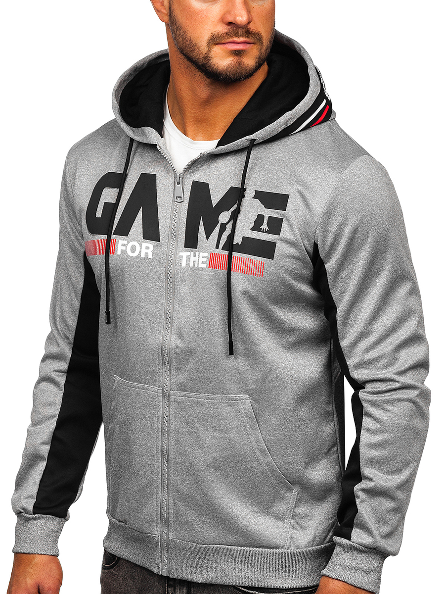 Muška siva majica s patentnim zatvaračem Bolf HY961 proizvod je koji će biti savršen bez obzira na godišnje doba. Riječ je o trenirci s patentnim zatvaračem klasičnog kroja. Ima kapuljaču podesivu vezicom. Donji dio i rukavi trenirke obrađeni su remenom koji pruža toplinu i zaštitu od vjetra u hladnijim danima. Majica ima dva vanjska džepa. Ima nekoliko različitih verzija boja. Dekorativni element je print na prsima, rukavima i kapuljači. Izrađena je od tkanine koja je vrlo ugodna na dodir. Savršen za šetnju, shopping ili izlet izvan grada s prijateljima. Kombinirajte ga sa trenirkama kako biste stvorili sjajnu odjeću za aktivnosti na otvorenom. Na dnevnoj bazi, trenirka će izgledati sjajno uz naše joggere i majicu kratkih rukava .