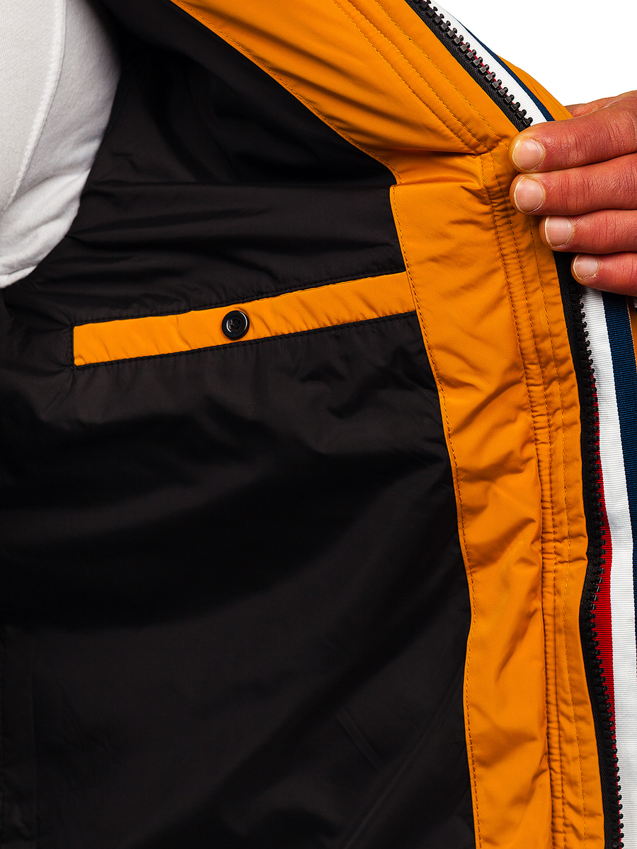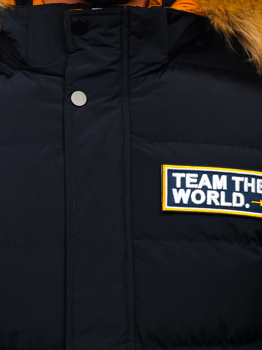 Tamnoplava duga prošivena muška zimska jakna Bolf 6477 savršena je za zimsku sezonu. Zatvara se klasično, patentnim zatvaračem i kopčama. Rukavi su regulirani čičak trakom, s unutarnje strane završeni rubom, zahvaljujući čemu jakna savršeno pristaje uz figuru i štiti od hladnoće. Ima ovratnik i odvojivu kapuljaču zahvaljujući kojoj ćete se zaštititi od vjetra i kiše. Na kapuljači je i dodatno, odvojivo krzno.Uklopljen i jednostavan kroj čini da svi u njemu izgledaju iznimno povoljno. Karakter daju ukrasne aplikacije na prsima i patentni zatvarači na dnu. Jakna ima dva džepa sa strane s gumbom i džep iznutra s gumbom . Izrađen je od visokokvalitetnih materijala, što ga čini vrlo udobnim i ugodnim na dodir. Savršeno za šetnju, sastanak s prijateljima ili izlet u grad. Ova jakna bit će savršena kombinacija s trapericama i klasičnim džemperom .