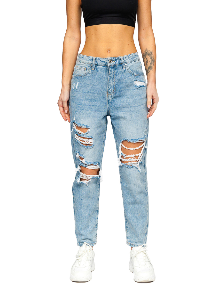 Plave ženske mom fit traperice Bolf WL2101 su mom fit traperice koje savršeno ističu žensku figuru. Moderno sjenčanje i ogrebotine na nogavicama daju im jedinstven izgled. Proizvod je izrađen od najkvalitetnijih materijala, 98% pamuka i 2% viskoze, što ga čini izuzetno udobnim. Hlače imaju vrlo praktične džepove, tri sprijeda i dva straga. Traper hlače su univerzalna baza za izgradnju svakodnevnih stilizacija. Možete ih nositi u šetnji, u kupovini, na poslu ili na izletu s prijateljima. Savršen za stiliziranje uz majicu kratkih rukava , kožnu jaknu ili trenirku .