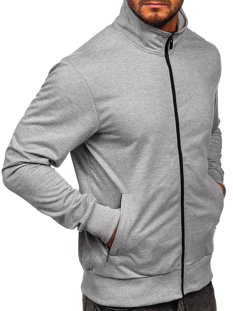 Siva dukserica muška s patentnim zatvaračem bez kapuljača Bolf B067 klasična je ponuda za ljude koji cijene minimalizam. Proizvod je dostupan u tri prigušene varijante boja. Ugodna na dodir mješavina materijala, pamuka i poliestera, daje osjećaj udobnosti i praktičnosti. Donji dio i rukavi su završeni remenom, zahvaljujući kojem savršeno pristaje uz tijelo. Sportski stil majice omogućuje vam stvaranje mnogih modernih stilizacija. Ovo je must have u svakom muškom ormaru. Obuci duksericu za školu, za šetnju i za teretanu. Kreirajte svoj sportski izgled uz trenirke i sportsku jaknu . Za casual outfit spojite trenirku s trapericama i prošivanom jaknom .