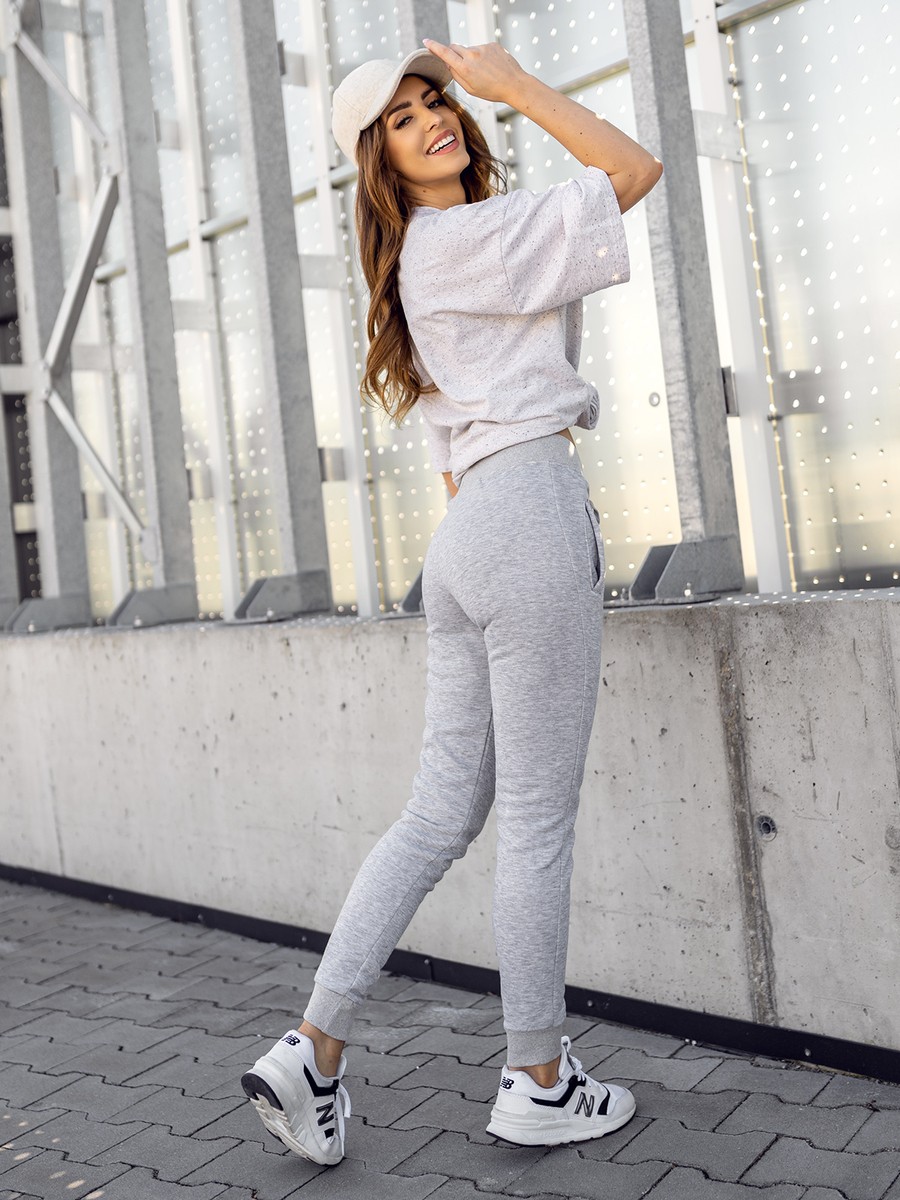 Melange sive ženske trenirke od Bolf CK-01 klasične su trenirke slim kroja koje savršeno nadopunjuju žensku figuru. Ovaj model hlača dostupan je u velikom, zanimljivom rasponu boja. Hlače imaju vezice i porbe u struku i dva džepa sprijeda. Jednostavan, opremljen kroj i manšete na nogama daju im sportski izgled. Proizvod je izrađen od nježne tkanine za trenirke ugodne na dodir.Trenerke mogu biti univerzalna baza za izradu svakodnevnih ili sportskih odijela. Savršene su za duksericu , majicu , laganu prijelaznu jaknu ili sportsku verziju s softshell jakne . U svakoj od ovih kombinacija lako je stvoriti jedinstven, originalan look koji će djelovati u mnogim situacijama. Preporučuje se nošenje kod kuće, u šetnji, tijekom kupovine, tijekom vježbanja u teretani ili na otvorenom.
