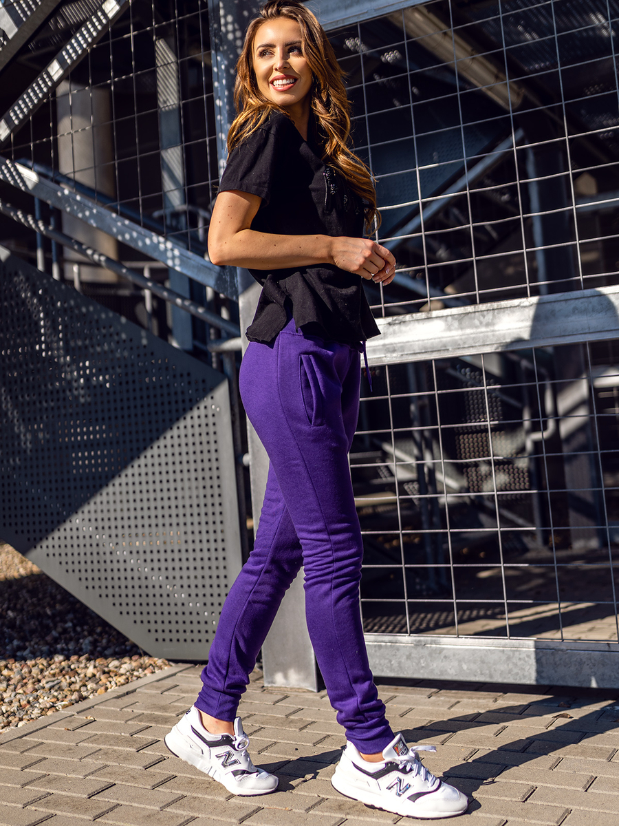 Ljubičaste ženske trenirke Bolf CK-01 klasične su trenirke slim kroja koje savršeno ističu žensku figuru. Ovaj model hlača dostupan je u velikom, zanimljivom rasponu boja. Hlače imaju vezice i porbe u struku i dva džepa sprijeda. Jednostavan, opremljen kroj i manšete na nogama daju im sportski izgled. Proizvod je izrađen od mekane tkanine dukserice ugodnoj u dodiru.