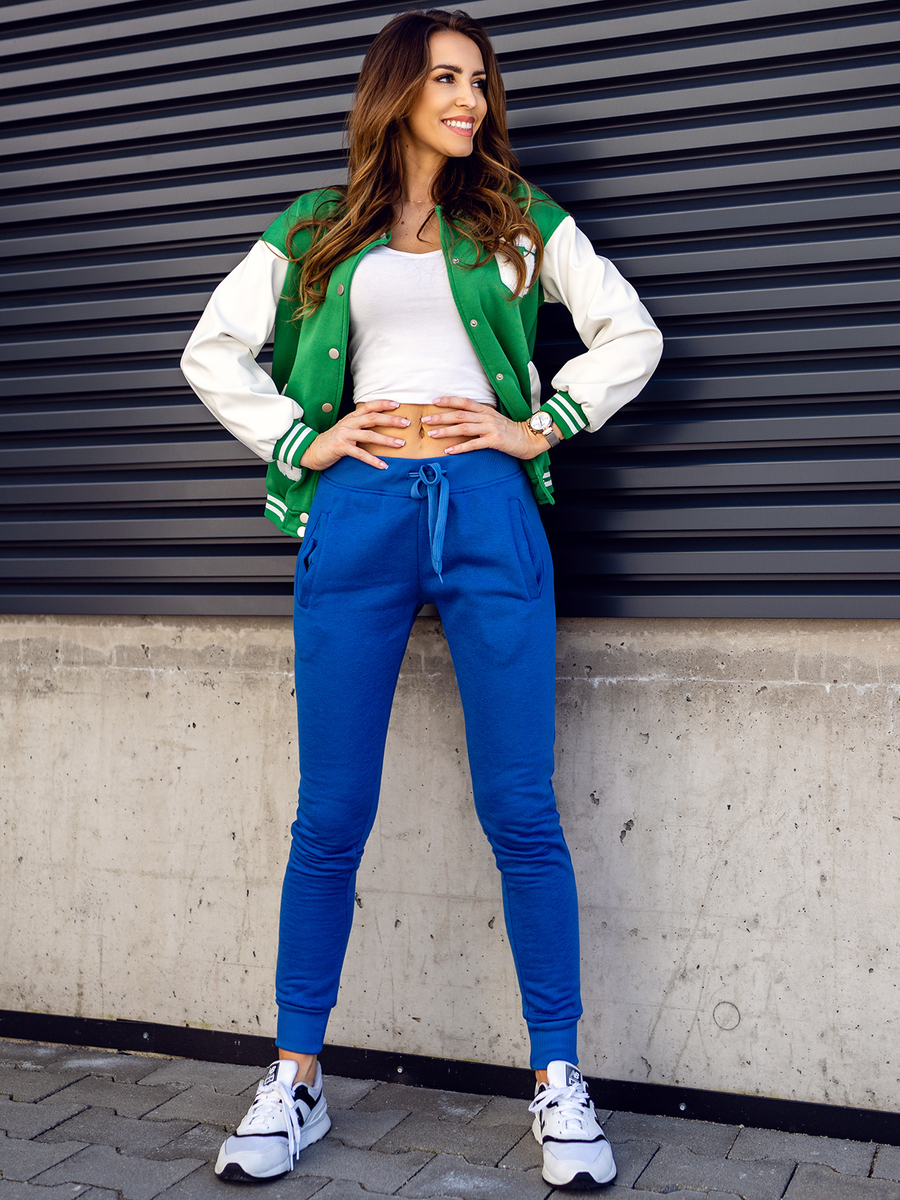 Kobalt ženske trenirke Bolf CK-01 klasične su trenirke slim kroja koje savršeno naglašavaju žensku figuru. Ovaj model hlača dostupan je u velikom, zanimljivom rasponu boja. Hlače imaju vezice i porbe u struku i dva džepa sprijeda. Jednostavan, opremljen kroj i manšete na nogama daju im sportski izgled. Proizvod je izrađen od nježne tkanine za trenirke ugodne na dodir.Trenerke mogu biti univerzalna baza za izradu svakodnevnih ili sportskih odijela. Savršene su za duksericu , majicu , laganu prijelaznu jaknu ili sportsku verziju s softshell jakne . U svakoj od ovih kombinacija lako je stvoriti jedinstven, originalan look koji će djelovati u mnogim situacijama. Preporučuje se nošenje kod kuće, u šetnji, tijekom kupovine, tijekom vježbanja u teretani ili na otvorenom.