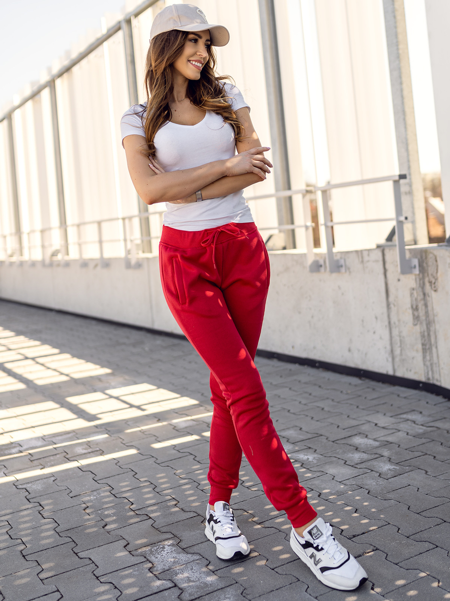 Crvene ženske trenirke od Bolf CK-01 klasične su trenirke slim kroja koje savršeno nadopunjuju žensku figuru. Ovaj model hlača dostupan je u velikom, zanimljivom rasponu boja. Hlače imaju vezice i porbe u struku i dva džepa sprijeda. Jednostavan, opremljen kroj i manšete na nogama daju im sportski izgled. Proizvod je izrađen od nježne tkanine za trenirke ugodne na dodir.Trenerke mogu biti univerzalna baza za izradu svakodnevnih ili sportskih odijela. Savršene su za duksericu , majicu , laganu prijelaznu jaknu ili sportsku verziju s softshell jakne . U svakoj od ovih kombinacija lako je stvoriti jedinstven, originalan look koji će djelovati u mnogim situacijama. Preporučuje se nošenje kod kuće, u šetnji, tijekom kupovine, tijekom vježbanja u teretani ili na otvorenom.
