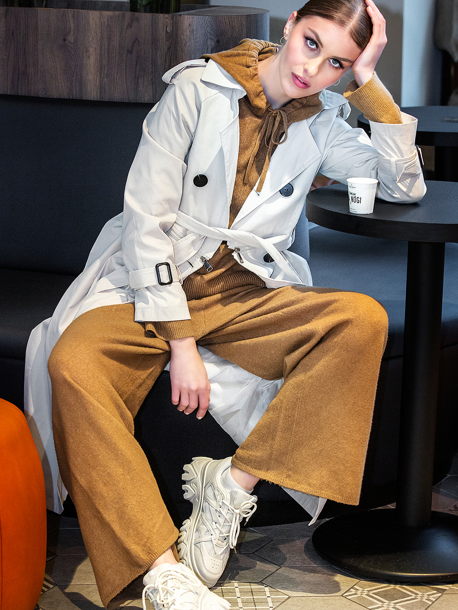 Bež jakna 2u1 ženski dugi trenč kaput s remenom Bolf AG3011 savršen je izbor za žene koje cijene eleganciju u svakodnevnim stilizacijama. Dvostruki kaput s remenom savršeno pristaje figuri. To je vrlo praktičan kaput 2u1, neizolirani trenč kaput. Zahvaljujući tome što se radi o kaputu s gumbom u struku, možete ga nositi i kao kratku jaknu. Zakopčava se gumbima i ima ovratnik. Vrlo kvalitetan materijal, daje osjećaj udobnosti i udobnosti tijekom nošenja. U njemu ćete izgledati fantastično kada idete na randevu ili s prijateljima u grad. Obradujte svoje najmilije originalnim outfitom i kombinirajte kaput s haljinom .