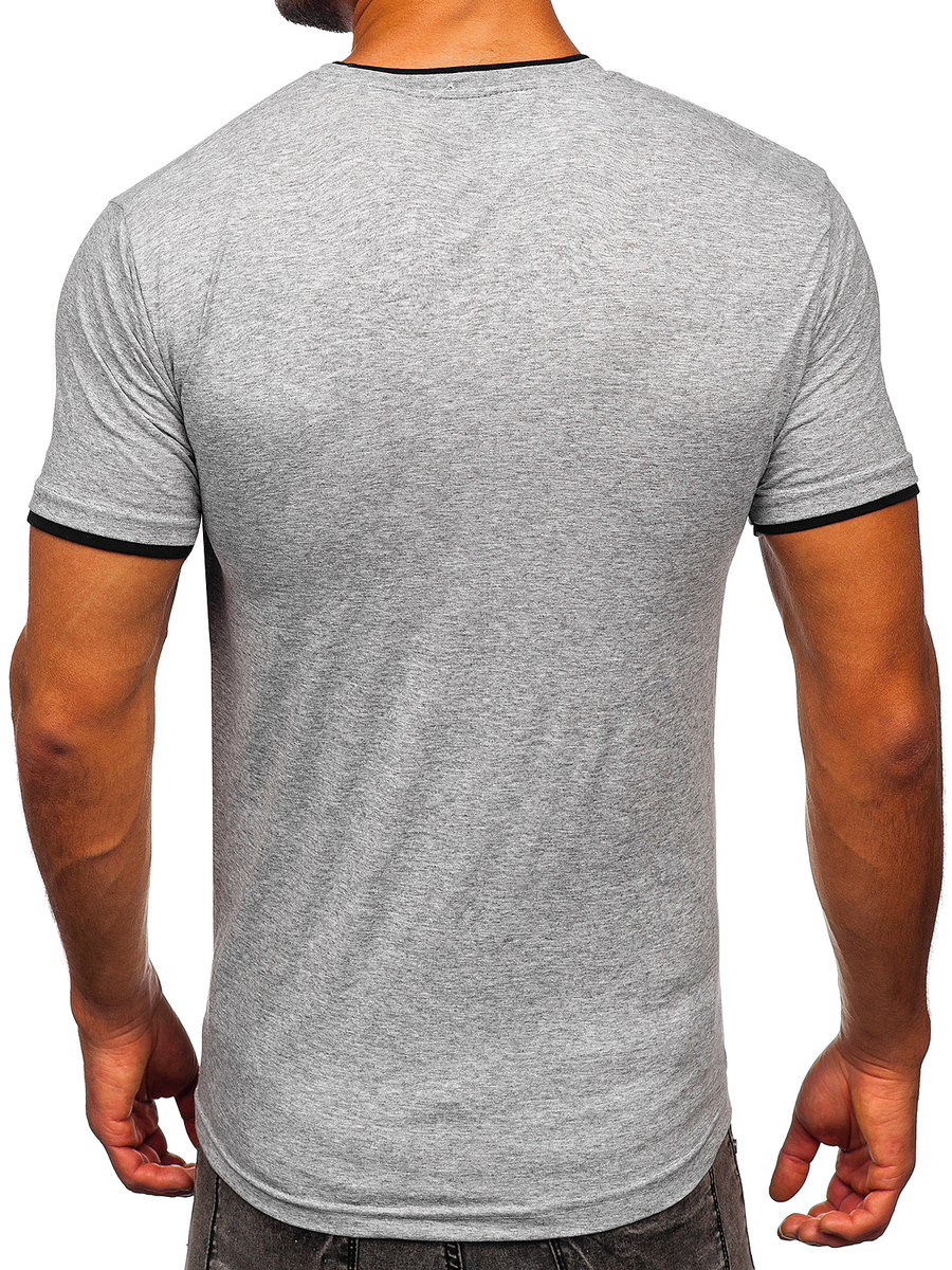 Siva muška majica Bolf 14316 klasičnog je kroja i izrađena je od visokokvalitetnih materijala. Ovaj model majice dolazi u mnogim bojama, kako prigušenim tako i izražajnim. Dobro pristaje muškoj figuri i lijepo pristaje uz tijelo. Ima okrugli izrez. Osnovna majica bit će izvrsna baza za stvaranje mnogih zanimljivih stilova. Majica je savršena za svakodnevno nošenje, must have proizvod u svakom muškom ormaru. Savršeno za traperice , cargo hlače ili joggerice . Možete ga nositi ispod dukserice s patentnim zatvaračem s kapuljačom, kožne jakne ili bomber .