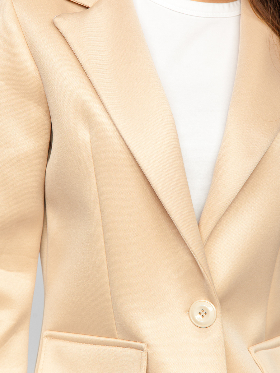 Ženski bež kratki kaput Bolf 20672 savršen je izbor za hladnije dane. Kratak kaput na dugmad će dodati stil svakom stajlingu. Moderan izgled daje imitacija bočnih džepova prekrivenih preklopom i ovratnikom. Riječ je o jedinstvenom kaputu jednostavnog kroja, poluelegantnog karaktera. Proizvod se sastoji od najkvalitetnijih materijala, što ga čini fleksibilnim i udobnim. Bezvremenski kroj znači da vam kaput može služiti mnogo godišnjih doba. Pogodan je kako za svakodnevno nošenje tako i za svečanije prilike. Izgledat će zapanjujuće u kombinaciji s haljinom !