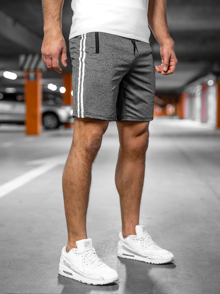 Muške grafitne kratke hlače Bolf 68024 podesive su u struku s jakim remenom i vezicom, savršeno pristaju na mušku figuru. Imaju dva praktična vanjska džepa s patentnim zatvaračima . Izrađen od visokokvalitetnog materijala, tako da ćete se osjećati ugodno u svakoj situaciji. Dekorativni element su moderni porubi sa strane. Proizvod dizajniran za one koji cijene slobodu kretanja i udobnost. Savršeno za teretanu ili trčanje. Komponirajte svoju sportsku odjeću s majicom i trenirkom. Izgledat će fantastično sa traper jaknom i kratkim hlačama.
