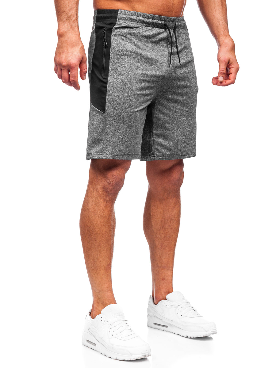 Grafitne muške kratke hlače Bolf 68026 proizvod je koji pruža udobnost tijekom najintenzivnijeg treninga. Dolazi u tri klasične varijante boja. Zahvaljujući prilagodbi u struku s jakim remenom i vezicom, savršeno pristaju uz tijelo. Suženi elastični rubovi nogavica. Ovaj model ima dva praktična vanjska džepa s patentnim zatvaračima. To je bestseler među sportskim stilizacijama. Možete ih koristiti u mnogim okolnostima, npr. u šetnji ili u teretani, ali su također izvrsni za planinske izlete. Za sportski izgled uparite trenirku s majicom i prslukom .