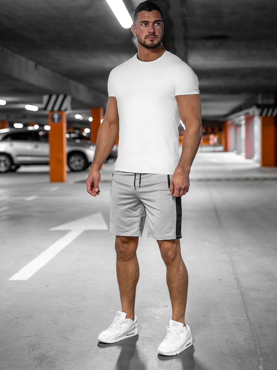 Muške sive trenirke Bolf 68040 proizvod je koji bi trebao biti u ljetnoj garderobi svakog muškarca. Podesivi u struku s jakim remenom i konopom, savršeno pristaju uz tijelo. Imaju dva vanjska džepa s patentnim zatvaračima. Element koji proizvodu daje karakter su ukrasni porubi sa strane. Materijal ugodan na dodir daje osjećaj ugode i udobnosti tijekom aktivnosti. Kratke hlače posvećene onima koji cijene aktivan način života. Savršene su za teretanu, hodanje ili trčanje. Za sportsku odjeću uparite kratke hlače s majicom . Također će izgledati fantastično u kombinaciji s duksericom ili prslukom .