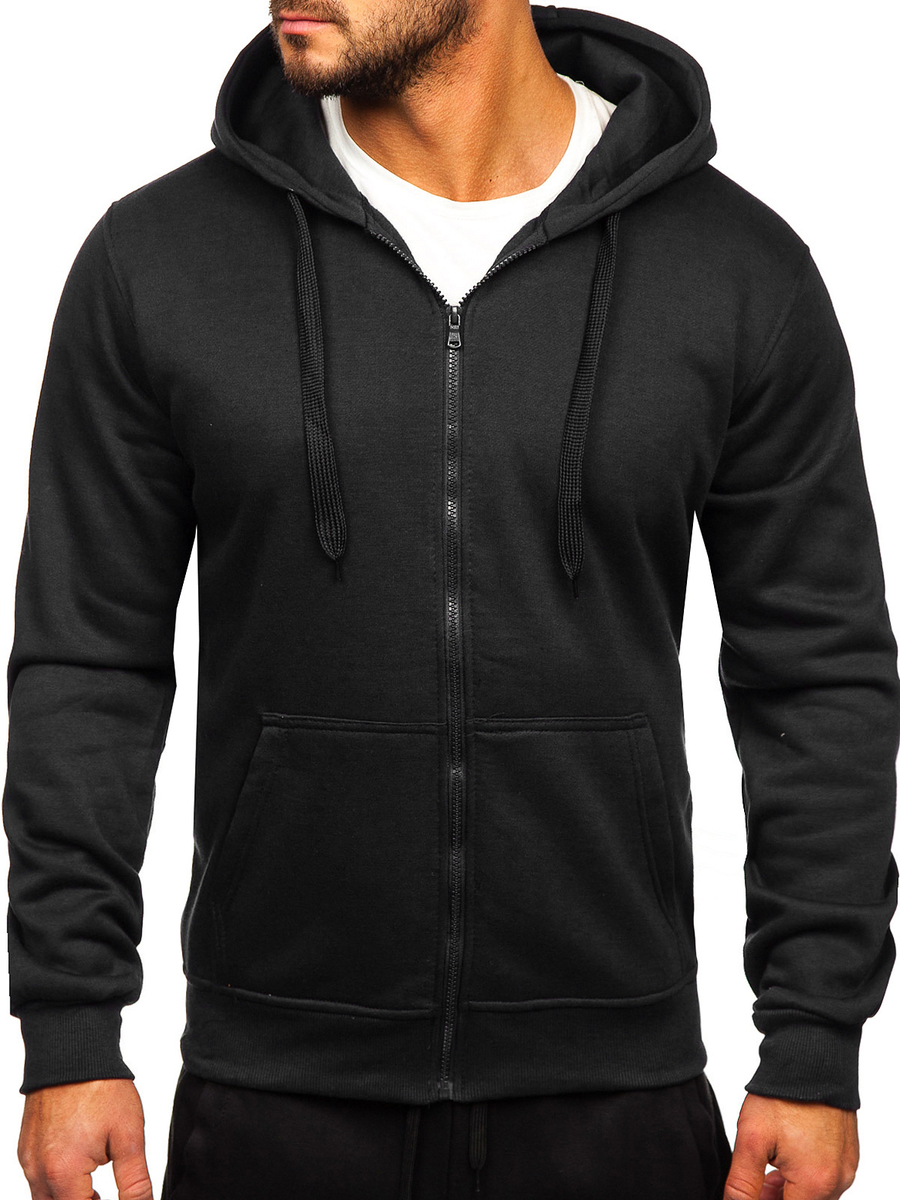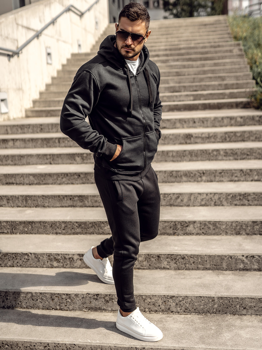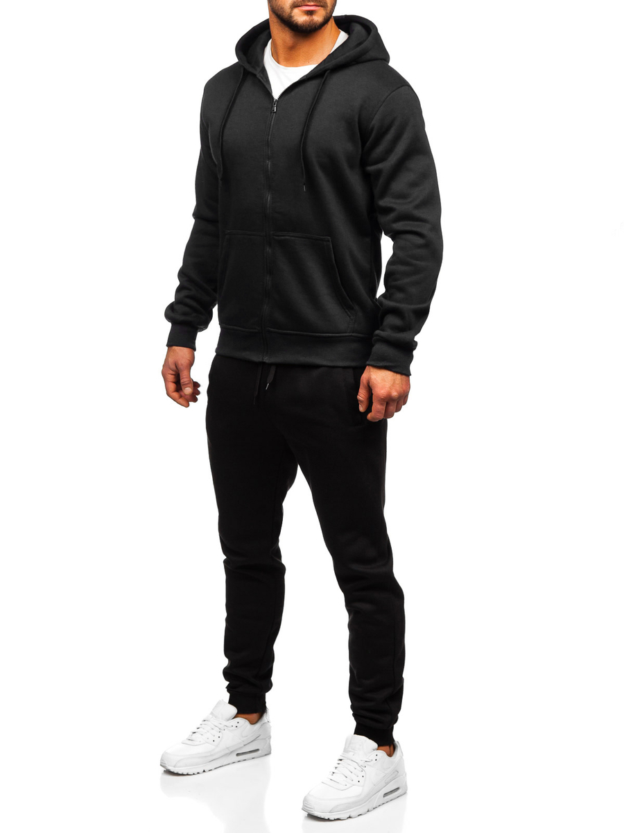 Muška crna trenirka s kapuljačom na patent zatvarač Bolf D004 savršen je izbor za svaku priliku i godišnje doba. Set uključuje duksericu i hlače. Dukserica klasičnog kroja, kopča se patentnim zatvaračem. Ima praktičnu kapuljaču i dva bočna džepa. Donji dio i rukavi trenirke obrađeni su remenom koji pruža toplinu i zaštitu od vjetra u hladnijim danima. Hlače su podesive u struku s jakim remenom i vezicom, te dva džepa sa strane. Jednostavan, uklopljen kroj daje im sportski izgled. Proizvod je izrađen od nježne tkanine ugodne na dodir. Komplet trenirke može biti univerzalna baza za izradu svakodnevne ili sportske odjeće. Dostupan je u desetak različitih verzija boja. Zahvaljujući širokoj paleti boja, ne samo da ćete odabrati nešto za sebe, već ćete trenirku svaki dan uskladiti sa svojim stajlingom. Komplet će savršeno odgovarati majici s laganom prijelaznom jaknom ili sportskom jaknom .