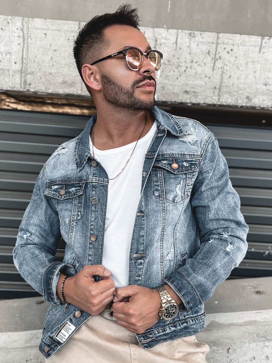 Muška plava traper jakna Bolf MJ507B bezvremenski je klasik. Modne ogrebotine daju mu jedinstven karakter. Kopča se gumbima, ima ovratnik. Ima dva džepa s gumbom i dva bočna džepa bez kopčanja. Rukavi zakopčani gumbom pružaju zaštitu od hladnoće i vjetra. Ujedno, praktičan i dekorativni element su prorezi s drukerima na dnu jakne. Plava traper jakna ima univerzalni kroj. Traper je uvijek u modi, pa će traper jakna savršeno pristajati uz svaku odjeću. Kombinirajte ga s joggericama , trapericama ili ležernijim stilom uz trenirke .